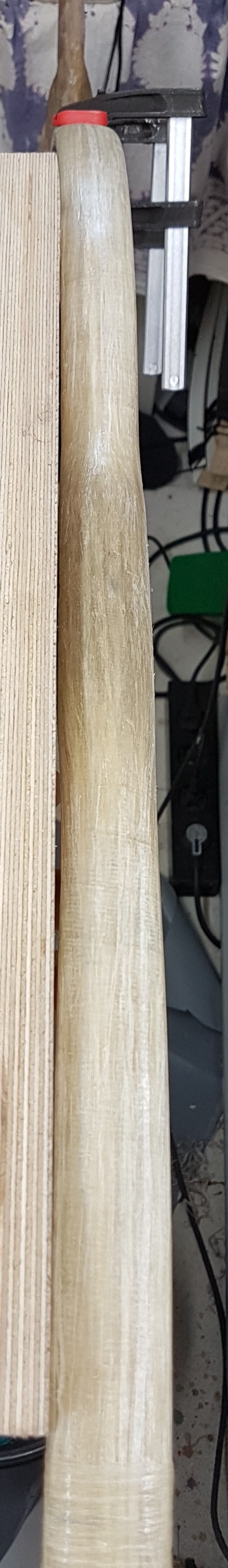 Jetzt gibt es "nur" noch das Problem mit der seitlichen Abweichung im Griffbereich. Hier bin ich noch nicht viel schlauer, also habe ich den Bogen einfach auf ein Holz fixiert und lass mal bis morgen liegen. Wenn diese Korrektur nicht hilft, werde ich wohl über eine Verstärkung für den Griffbereich nachdenken.