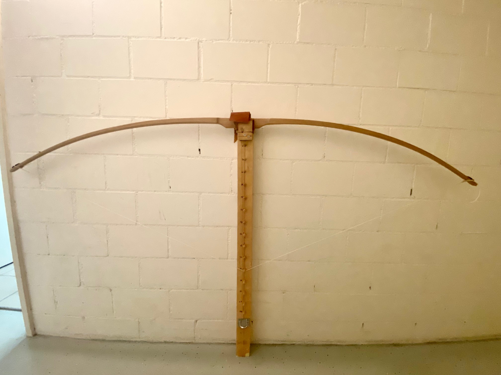 Um Fotos zu machen, klinkst du die Sehne ein. Mehr als 2-3 Sekunden solltest du die Sehne nicht ausziehen! Du fängst dir so zu viel Set ein. Gewissermaßen verbiegst du das Stück Holz so irreversibel. Bau dir an den Tillerstock eine Umlenkrolle und mach die Holzpinne weg.