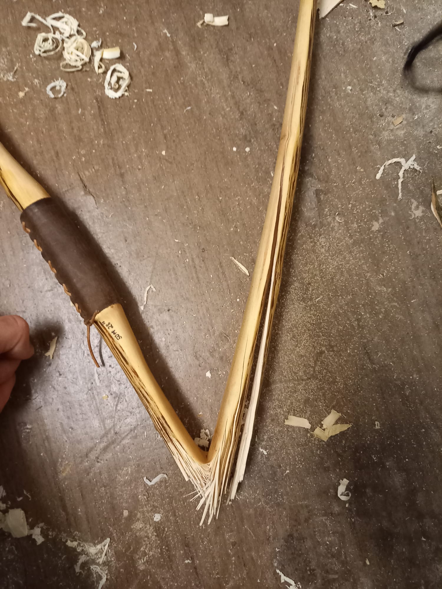 hab in den letzten Wochen mein Hartriegelbogen mit 50# fertig gemacht und als der Bogenbaukollege Bogenbas letzte Woche zu Besuch war und ich den fertigen Bogen erneut schießen wollte ist das passiert