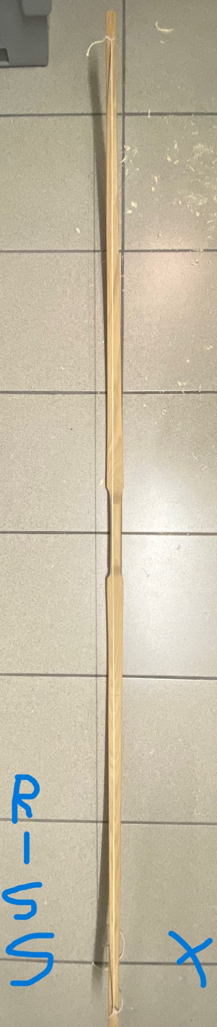 Da du aber mit dem Zuggewicht noch weit runter willst und der Bogen recht lang ist: die griffnahen Bereiche nicht mehr dünner machen und die Stellen beim Tillern gut beobachten, ob da was biegt.