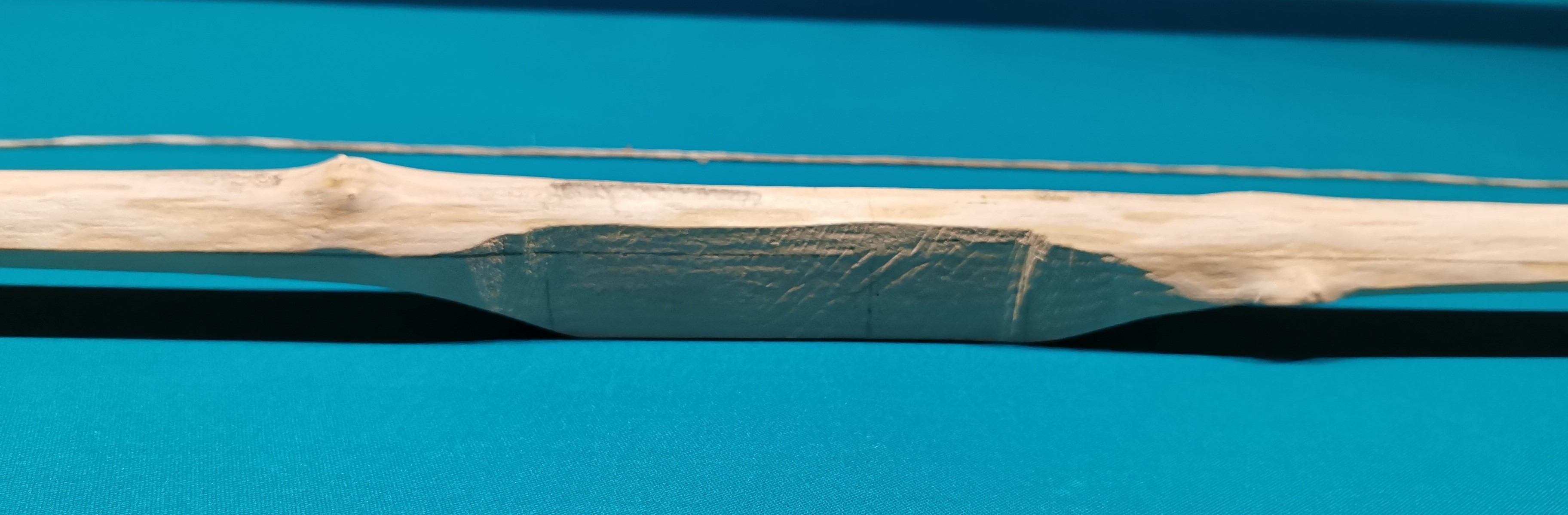 Dabei werde ich versuchen den rechten Wurfarm in Griffnähe nicht weiter zu schwächen, und am linken Wurfarm die steife Stelle am Knast zu erweichen.