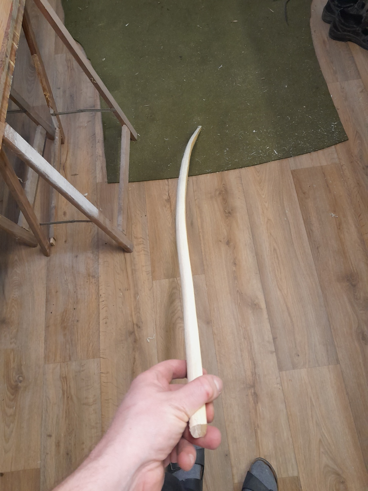 Die erste Ulme hat ein schlichtes Stabbogenprofil bekommen, bei einer Länge von gut 150cm. Aktuell 429gr Gewicht. Liegt jetzt wieder im Heizkeller, fühlt sich aber schon recht trocken an.