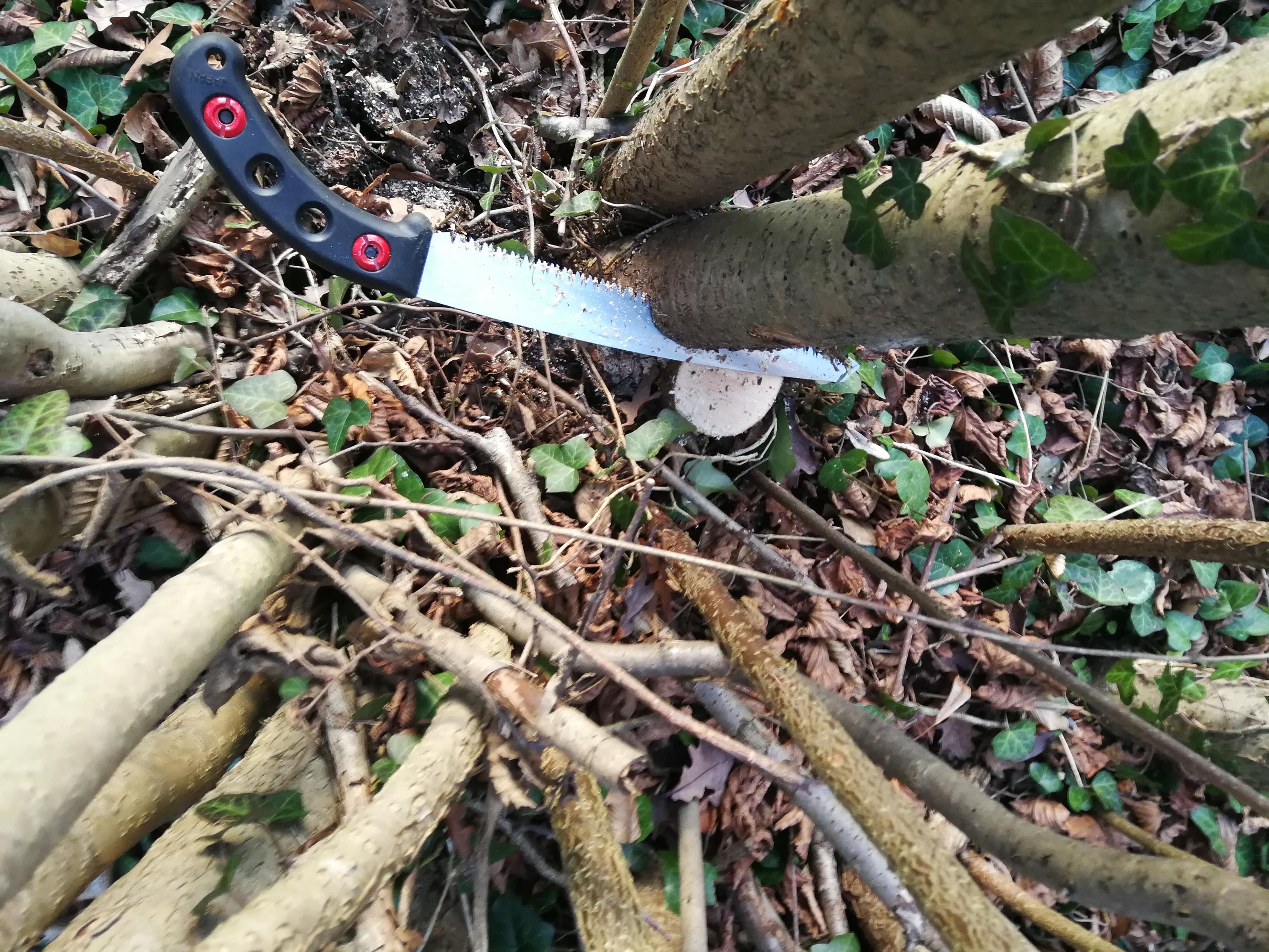 Hasel mit der Hand hobeln ist etwas mühsam, vor allem wenn er viele Totäste hat.