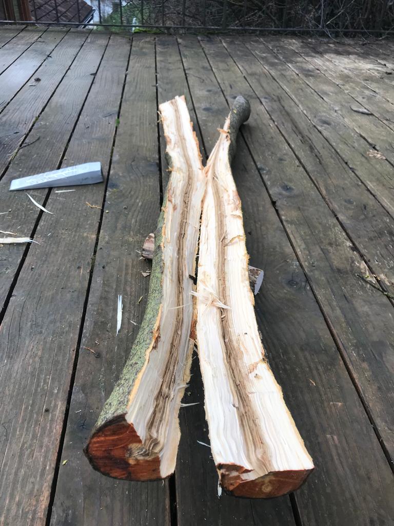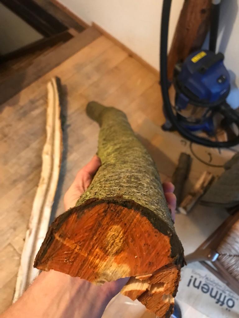 Habitat mit Kätzchen Der soll es werden: Den Rest des Baumes habe ich als 3 weitere Rohlinge bzw. Holz fürs nächste Lagerfeuer verwertet: Stammdurchmesser liegt bei 9-10 cm