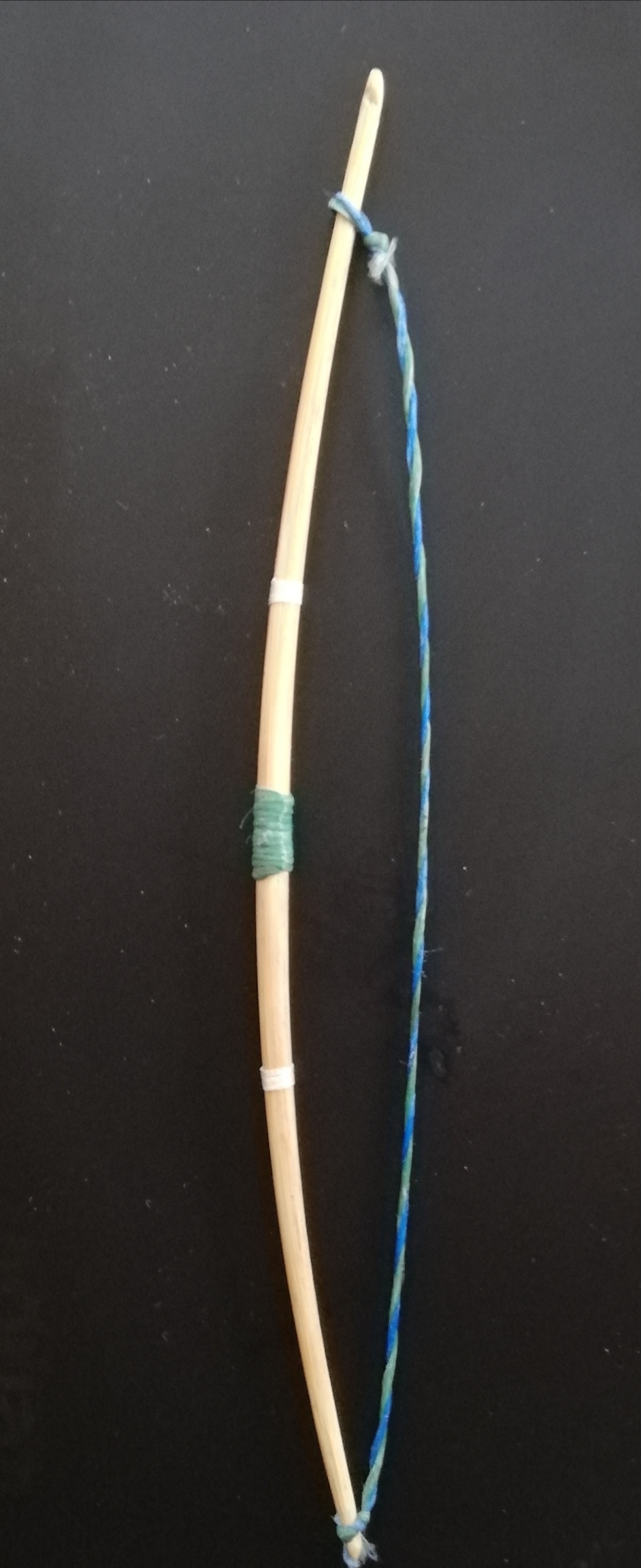 Mein erster Mäuseboge. Kein Warbow, aber auch ein schöner Stabbogen geworden. Leider ist mir der Rücken beim toasten etwas zu kross geworden daher auch die Wicklung (ein Span kam hoch).