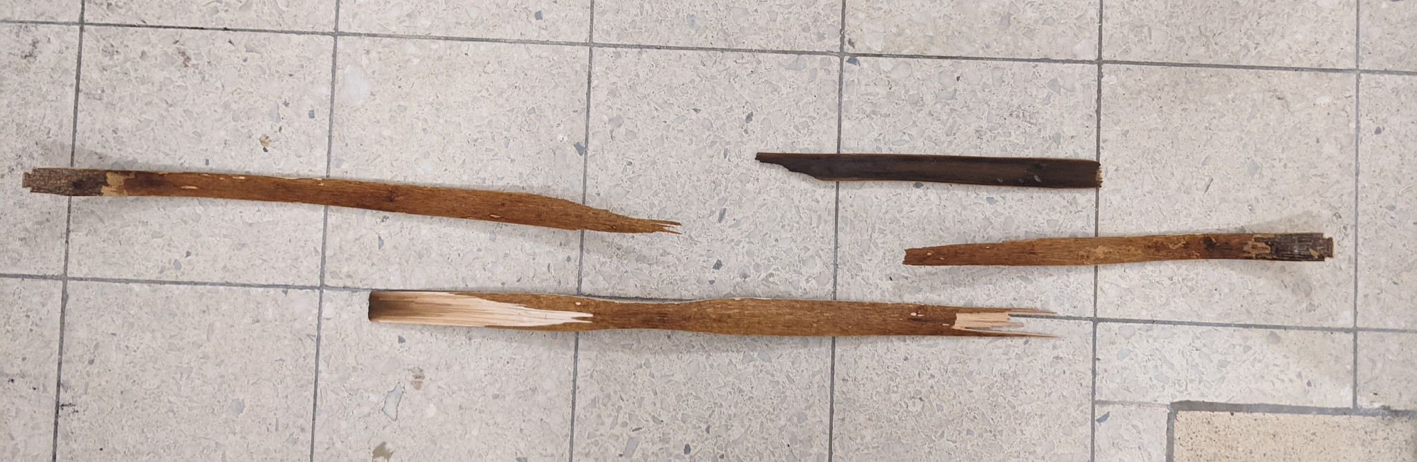 Beim zurück schlagen ist der untere Wurfarm im fade ebenfalls gebrochen, dort sieht der Bruch aber schön faserig aus.