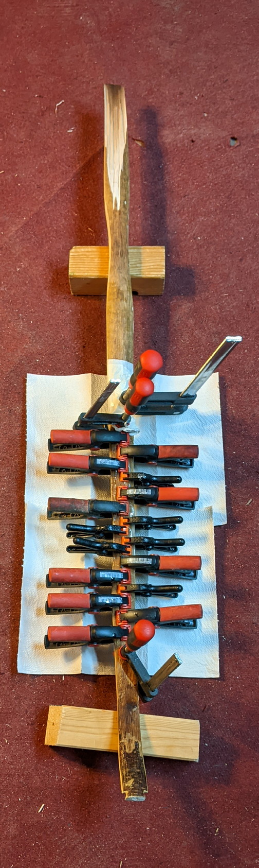 Er ist genau an einer Stelle, wie das letzte Mal glatt gebrochen, die einmal zuviel Hitze abbekommen hat und der Bast auch deutlich dunkler war. Ich hatte deswegen schon über ein Hanf backing nachgedacht, wollte aber wissen ob das als selfbow hält, wenn das Haselholz 4h gegrillt wird.