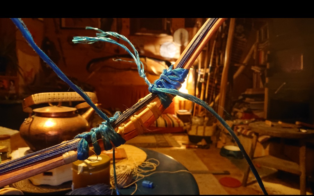 Am zweiten Bogen ist die erste Epoxyd Verstärkung trocken.. mit dünnem, sehr reißfesten Leinen Garn von boegli gewickelt...