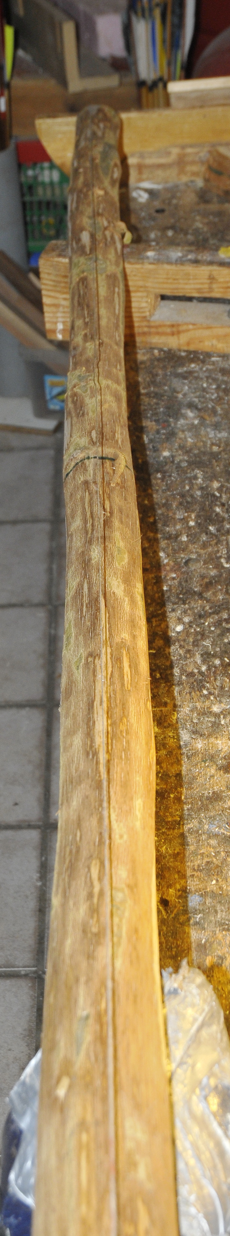 Der Hasel am Rücken war zu stark, 8mm, da ist jetzt von der Hainbuche schon fast nichts mehr übrig deshalb hab ich momentan keine Lust weiter zu machen, den Fehler mit dem zu dicken Hasel kann ich nicht mehr ausbessern. Das Hasellaminat hätte deutlich dünner sein müssen, so um die 4 bis 5 mm.