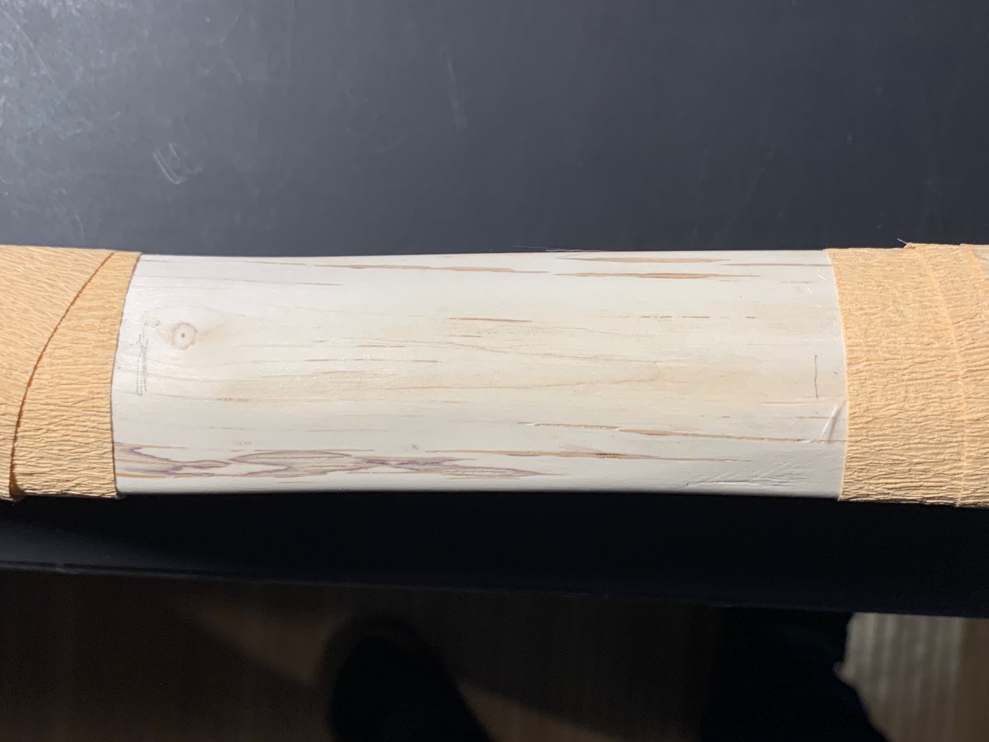 Der abgehobene Span Mit Sekundenkleber getränkt und verschliffen Glasfaserpflaster Epoxy und geföhnt Nochmal geschliffen Wicklung mit Garn und Epoxy und nochmal HLF, so dass es gut durchziehen kann