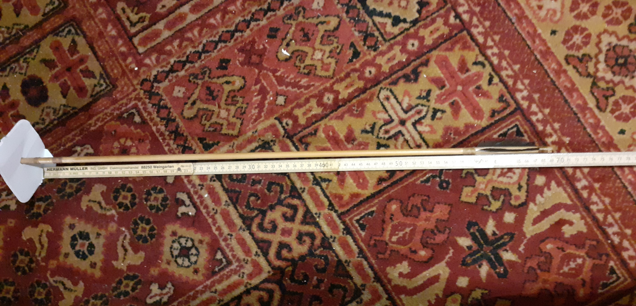 Besonderheiten: Der Trocknungsriss im Griff und Bogen wurde ausgearbeitet. Länge des Risses insgesamt 45cm. Der Markanal ist im oberen WA zu sehen und auch ein bisschen im unteren.