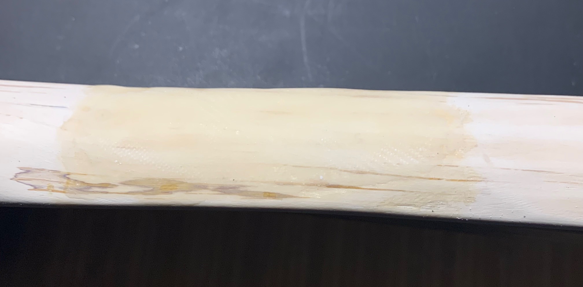 Der abgehobene Span Mit Sekundenkleber getränkt und verschliffen Glasfaserpflaster Epoxy und geföhnt Nochmal geschliffen Wicklung mit Garn und Epoxy und nochmal HLF, so dass es gut durchziehen kann