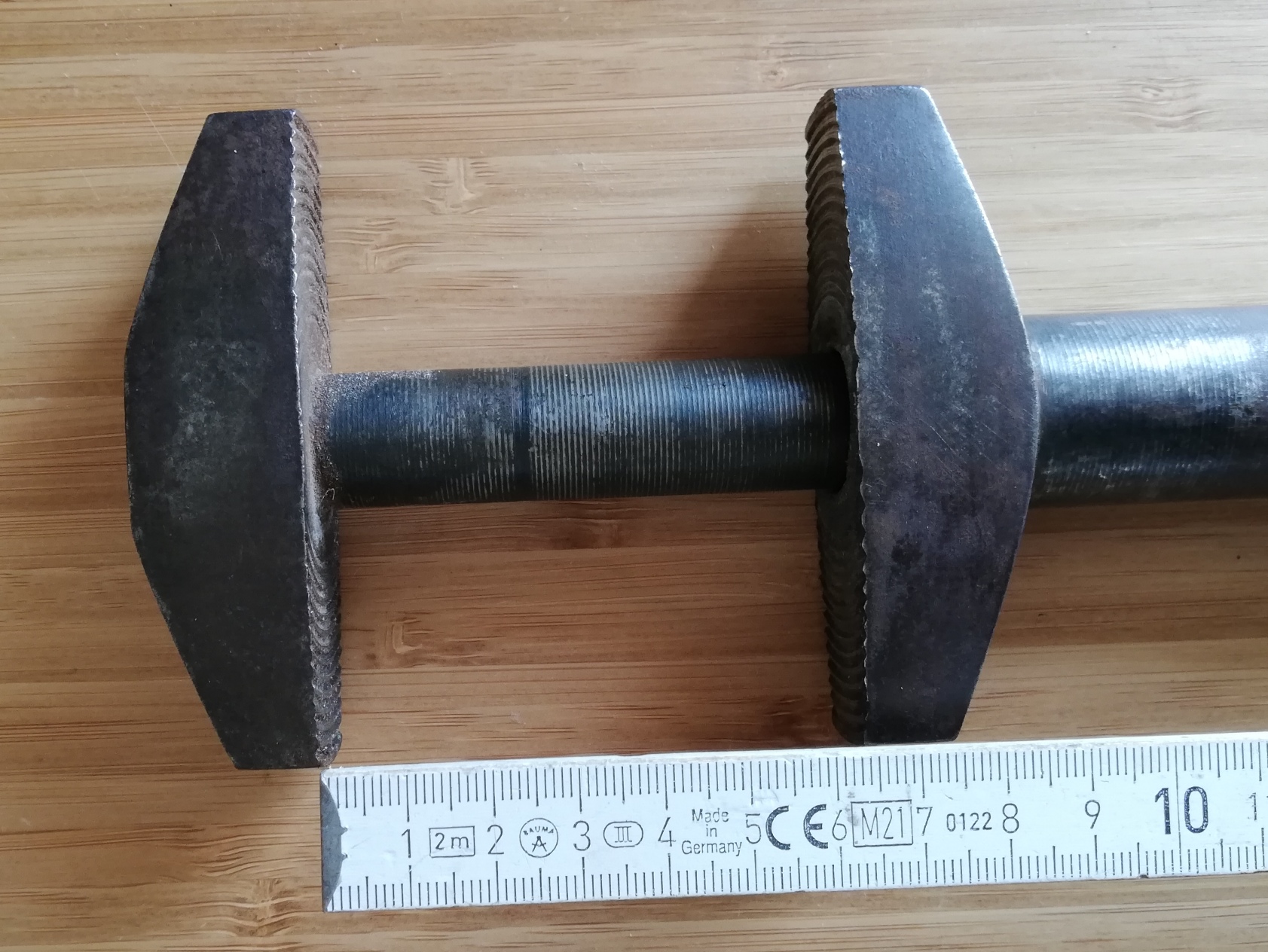Es ist eine, ja keine Ahnung. Alte zwinge, mobiler Schraubstock..... Unkaputbar und notfalls als Hammer tauglich. Der Vorteil gegenüber einer normalen Zwinge ist das keine radikalen Kräfte auftreten und sich beim zwingen nichts bewegt. Maximale Maulweite 65 mm. Natürlich kann ich sie noch aufarbeiten, hat in den Jahrzehnten etwas Patina angesetzt.