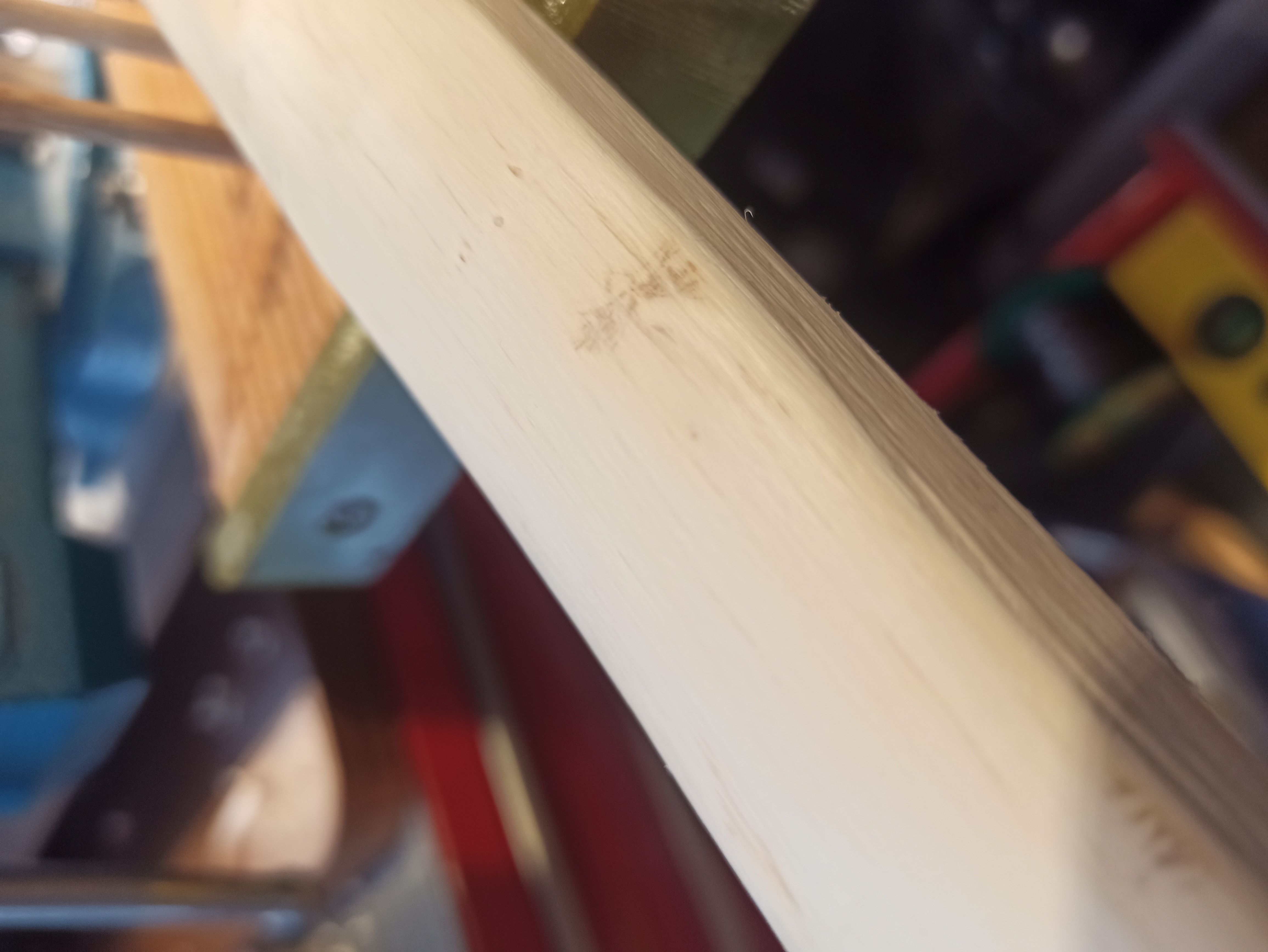 Bei solchen Stellen mit einer Ziehklinge oder Schleifpapier großzügig beiarbeiten. Abrupte Übergänge (regelrechte Kanten) können auch bei Hasel zum Bruch führen.