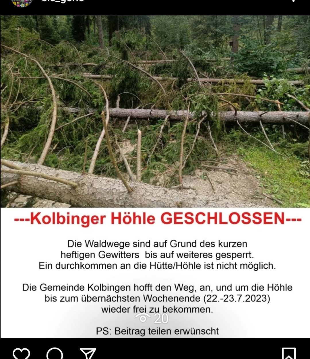 Das wurde mir gerade über Instagram geteilt. Hoffentlich sieht es bei der Hütte nicht auch so aus.
