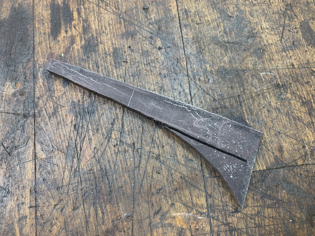 Das Stück war knapp unter 4 mm dick, durch das Schmieden gab es Vertiefungen die ich nicht haben wollte, so habe ich einiges geschliffen.