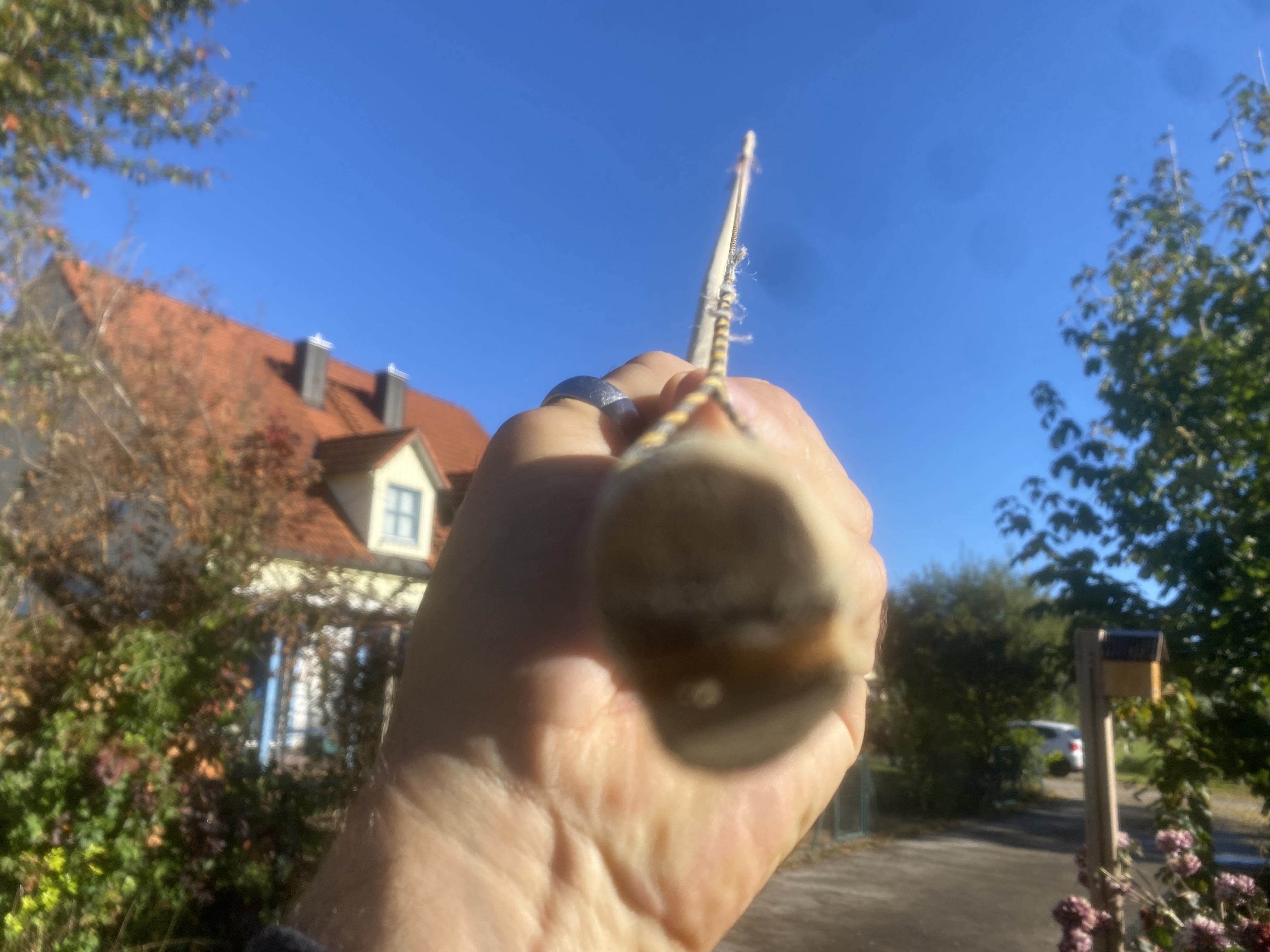 Dann ist es noch so, dass ich hier mein einziges gerades Goldregen-Stück verarbeitet habe. Da wärs mir lieber, einen schwächeren - aber korrekt biegenden - Bogen zu bauen. Der schräg stehende Rücken fühlt sich nicht gut an. Und sieht außerdem doof aus. So gesehen, wäre ich auch mit 70 # noch okay, und ein paar Zentimeter kappen wäre ja auch noch eine Option. Die nächste Bambusleiste steht schon in den Startlöchern und für den Bauch habe ich recht gute Eibe. Nochmal passiert mir das nicht, dass ich den Bambus nicht schnurgerade aufbringe. Insofern bin ich guter Dinge, dass spätestens der nächste Bogen vom Zuggewicht her da landet, wo ich ihn haben will.