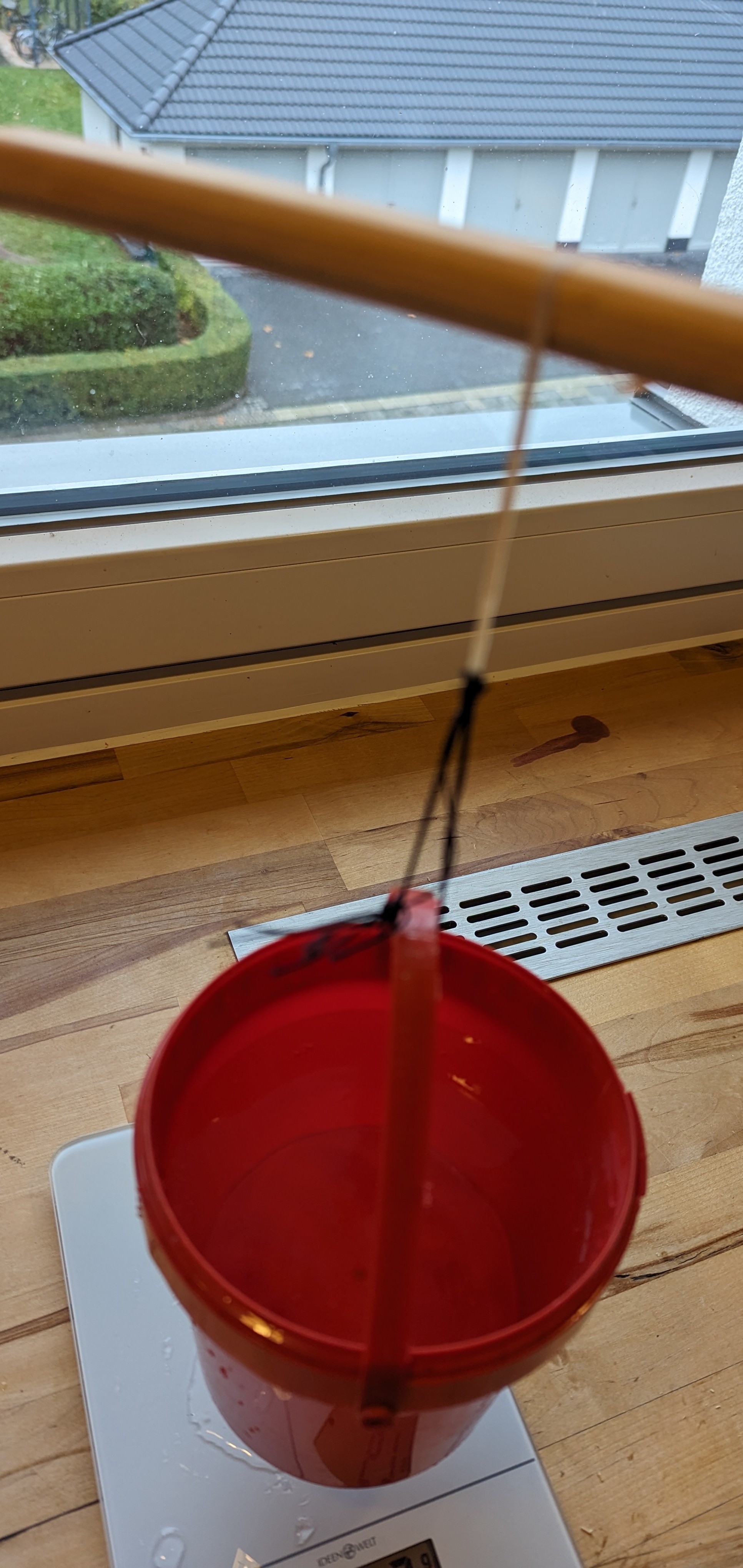 Einen Spahn auf der einen Seite mit Sekundenkleber an ein Stück Holz geklebt und an der anderen Seite ein paar Fäden drauf geklebt. Dann an einen Eimer gebunden und langsam das Gewicht erhöht. Hab das dann immer für 10sec gehalten.