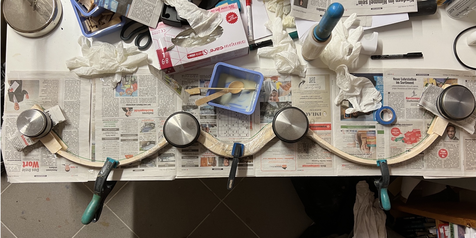 Heute erste Biegeversuche mit Ahorn und Hasel für die Wurfarme. Ahorn hat sich kalt nicht biegen lassen. Holzfeuchte 25%. Hasel ist viel zugfester und hat sich nass und ohne Erhitzen bei 24% Holzfeuchte problemlos biegen lassen. Dann noch ein Holzbrettchen aus dem Hasel für die Tips gesägt. Morgen baue ich die Form für den 2. Wurfarm. Den Wurfarm habe ich schon mit der Bandsäge ausgeschnitten, dann mit der Raspel in Form gebracht und alles mit der Ziehklinge geglättet.lG Stephan