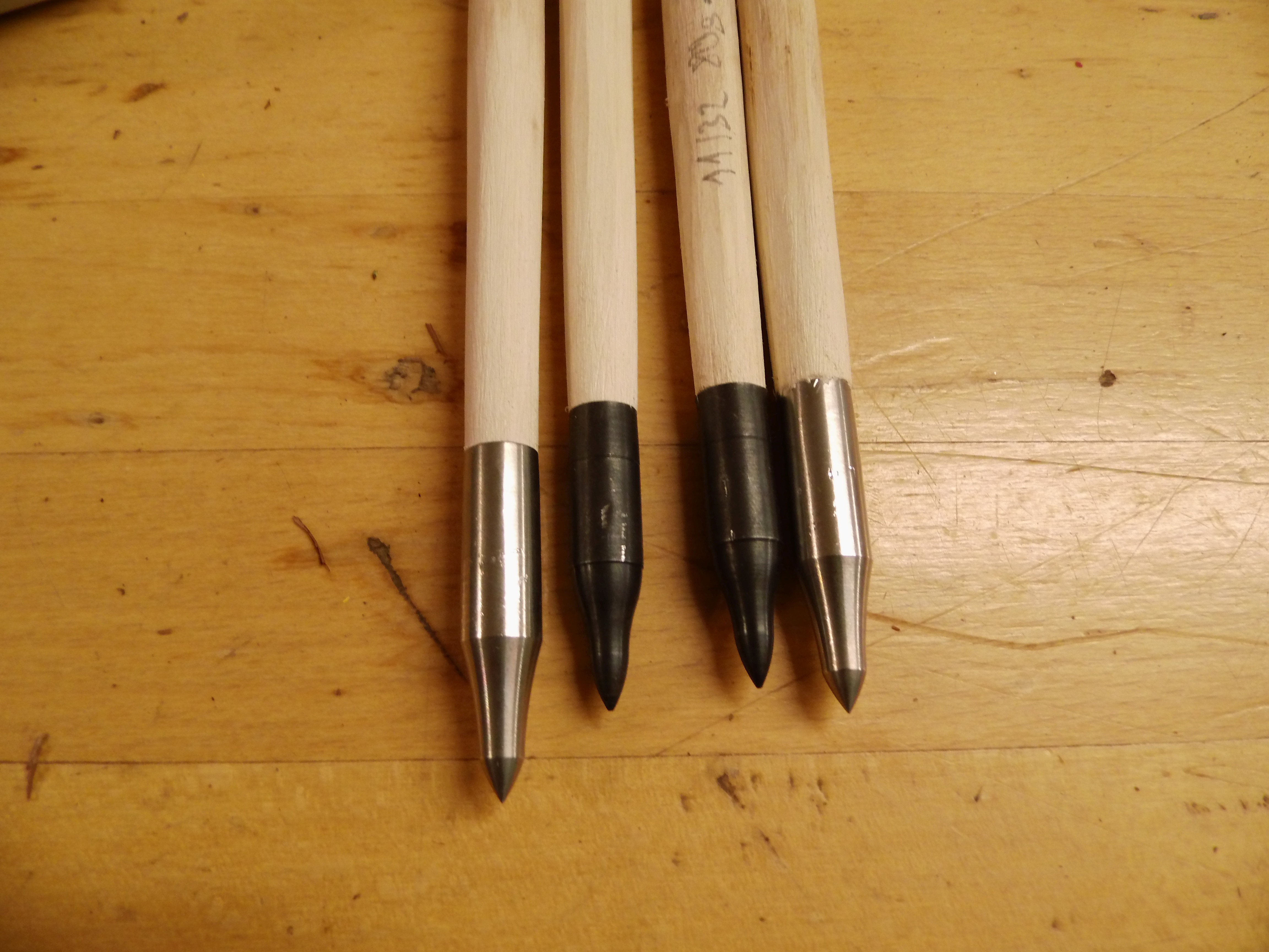 ein wenig dicker sein, wenn du sowieso verschiedene Spitzen hast, kann man besser variieren. Wenn Kleber: muß der dann aber auf den Schaft und die Spitze nur mit Zange greifen. Sehr viel Zeit ist dann auch nicht, also Vorbereitung ist alles.