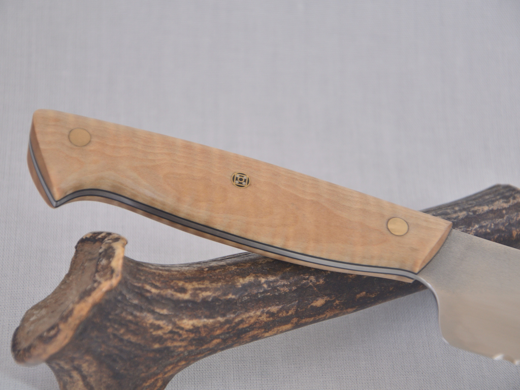 Griff: Stabilisiertes Ahorn, schwarzes Fiber, Messingnieten, Mosaikpin