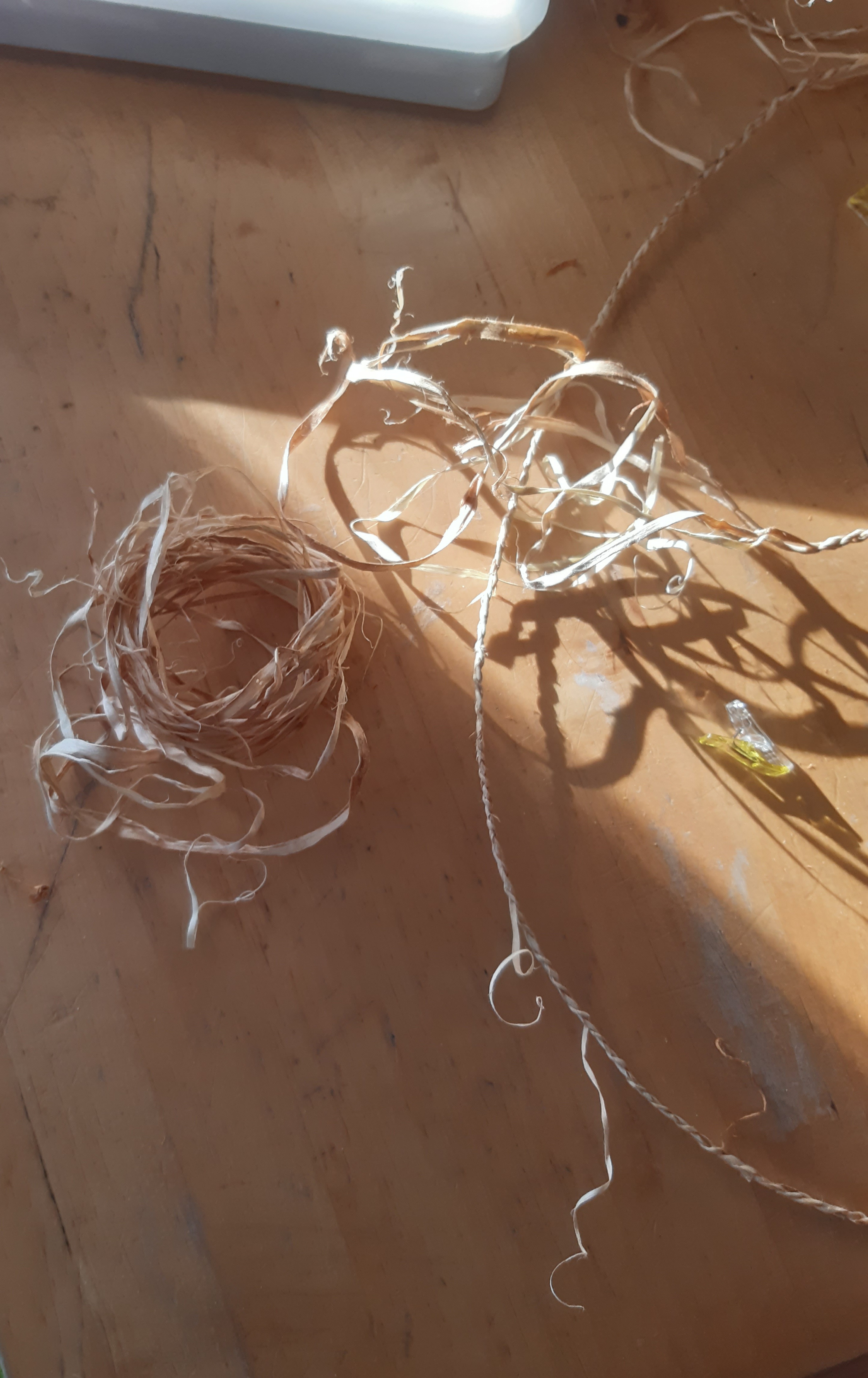 Es soll eine Art Druiden/ Hexerbogen mit dem Hexenei als Griff werden. Habe heute Kirschrinde als deko Material mitgenommen und ein bisschen Schnur aus dem ulmenbast gedreht.