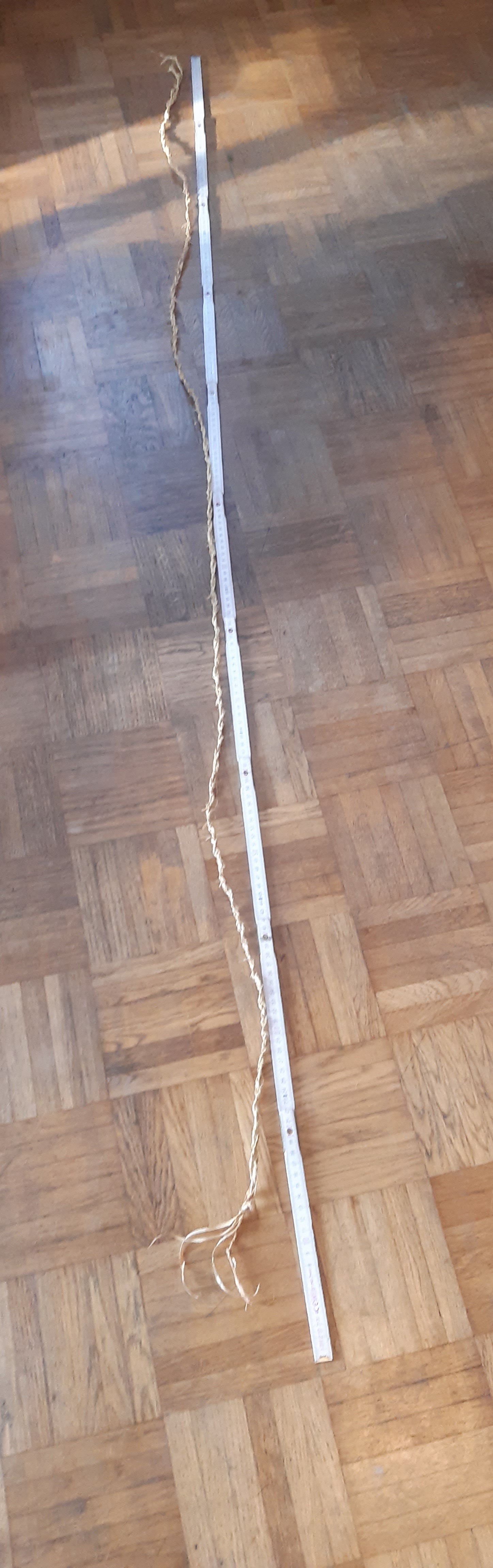 habe den Bast mal zu einer Sehne gedreht und mit Öl, bienenwachs, fichtenharz- Mischung eingeschmiert. Hält wahrscheinlich eh nicht.