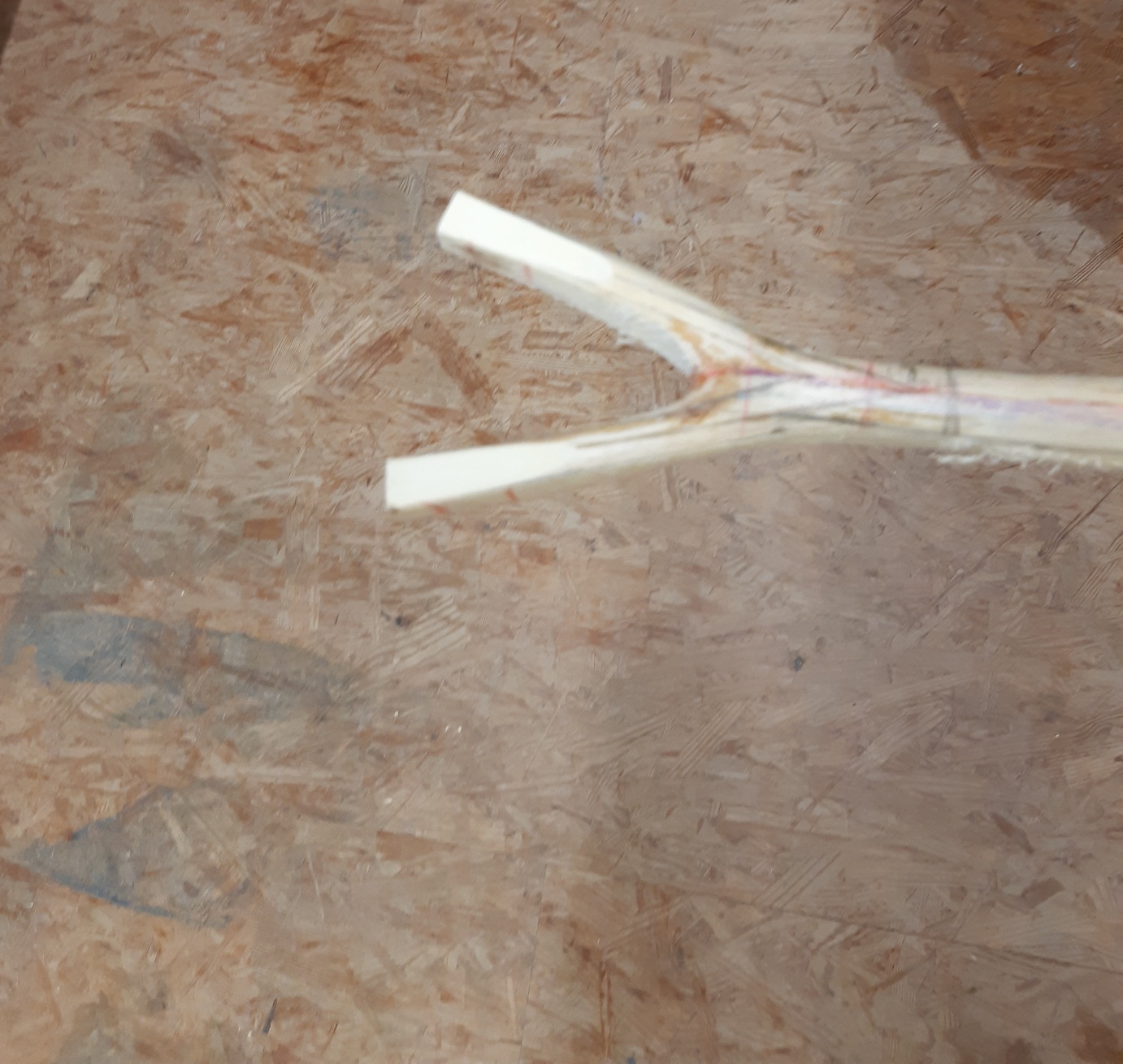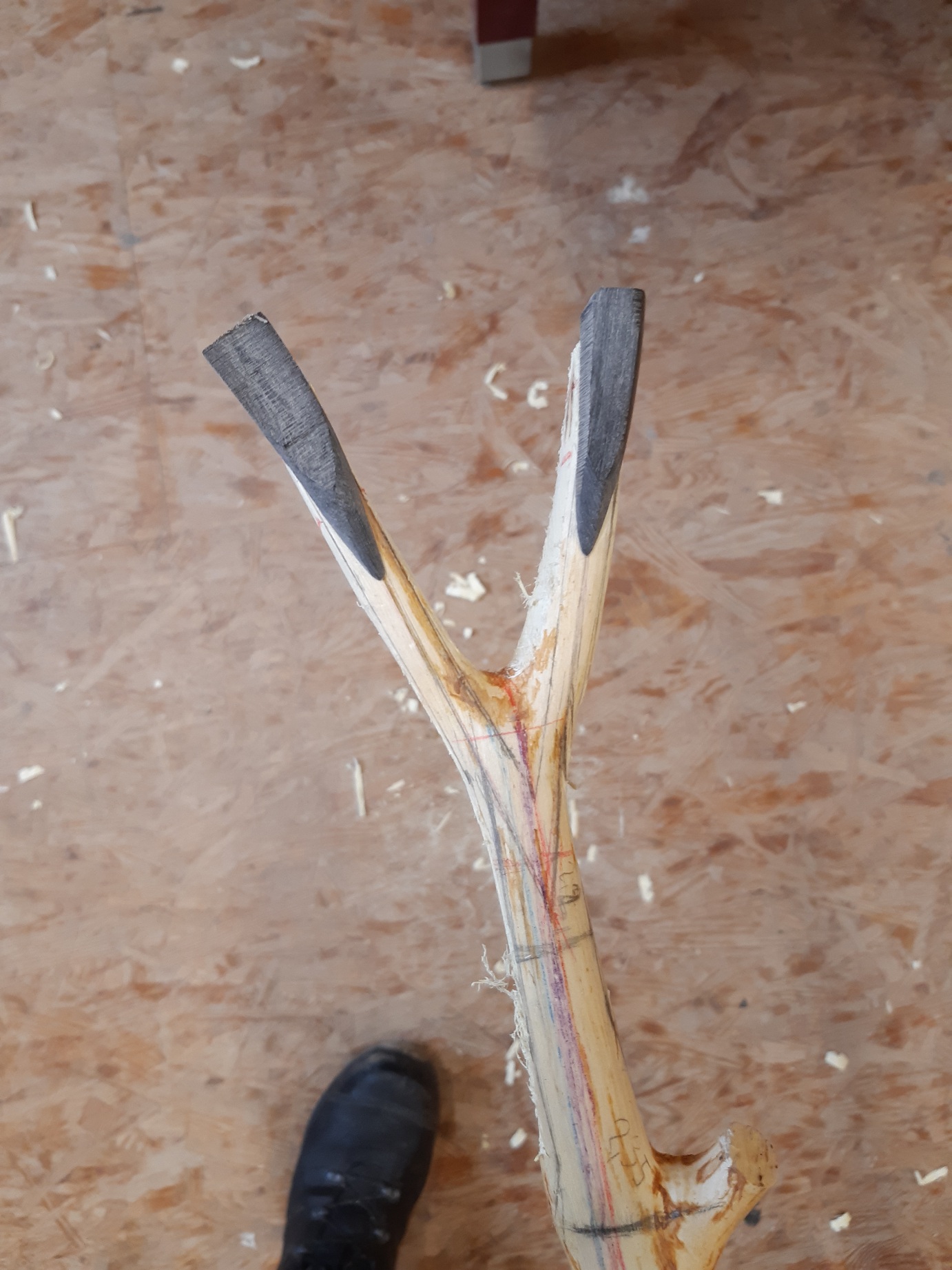 Ich weiß schon warum ich eigentlich nicht mehr auf dem Schnitzpferd sitze das ist mir jetzt schon 3 mal passiert auf zwei verschiedenen Schnitzpferden. Plan ist jetzt Kirschrinde draufzukleben der Bereich biegt nicht mit. Der Übergang wird gewickelt.