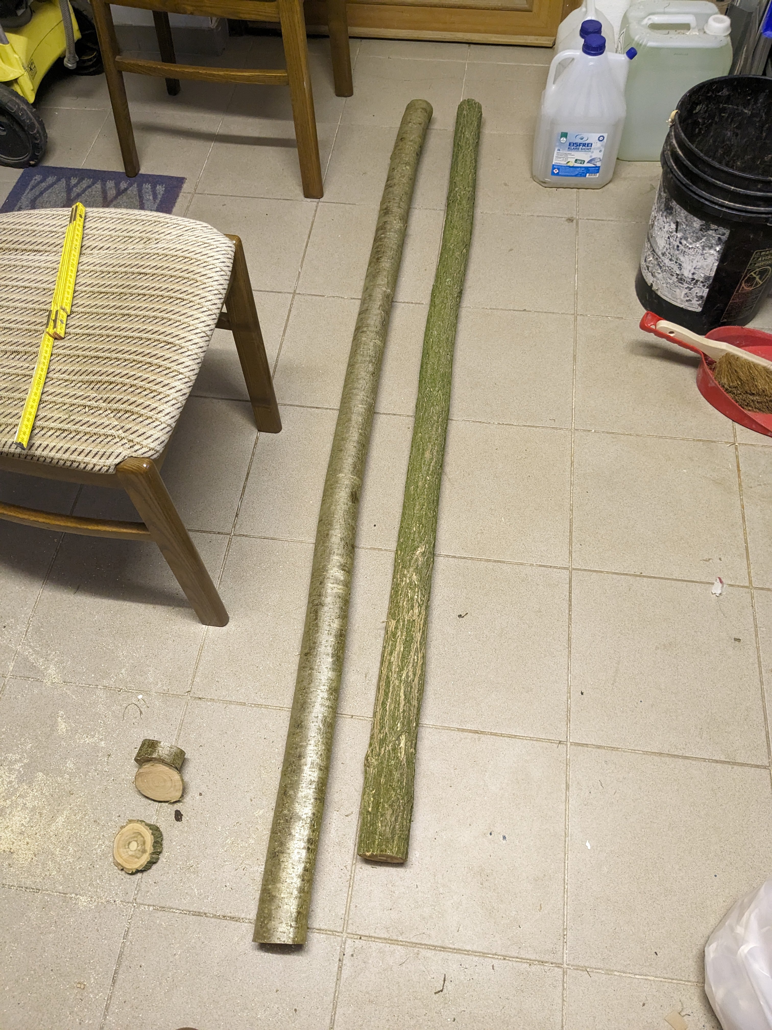 Ich habe die Knüppel etwas auf reflex an den Balken gezwungen. Zu diesem Zeitpunkt wollte ich eigentlich nur noch in die Kiste (sieht man vllt an meinen schnell zusammengekramten Keilen). Ich hoffe es tut das, was es soll.