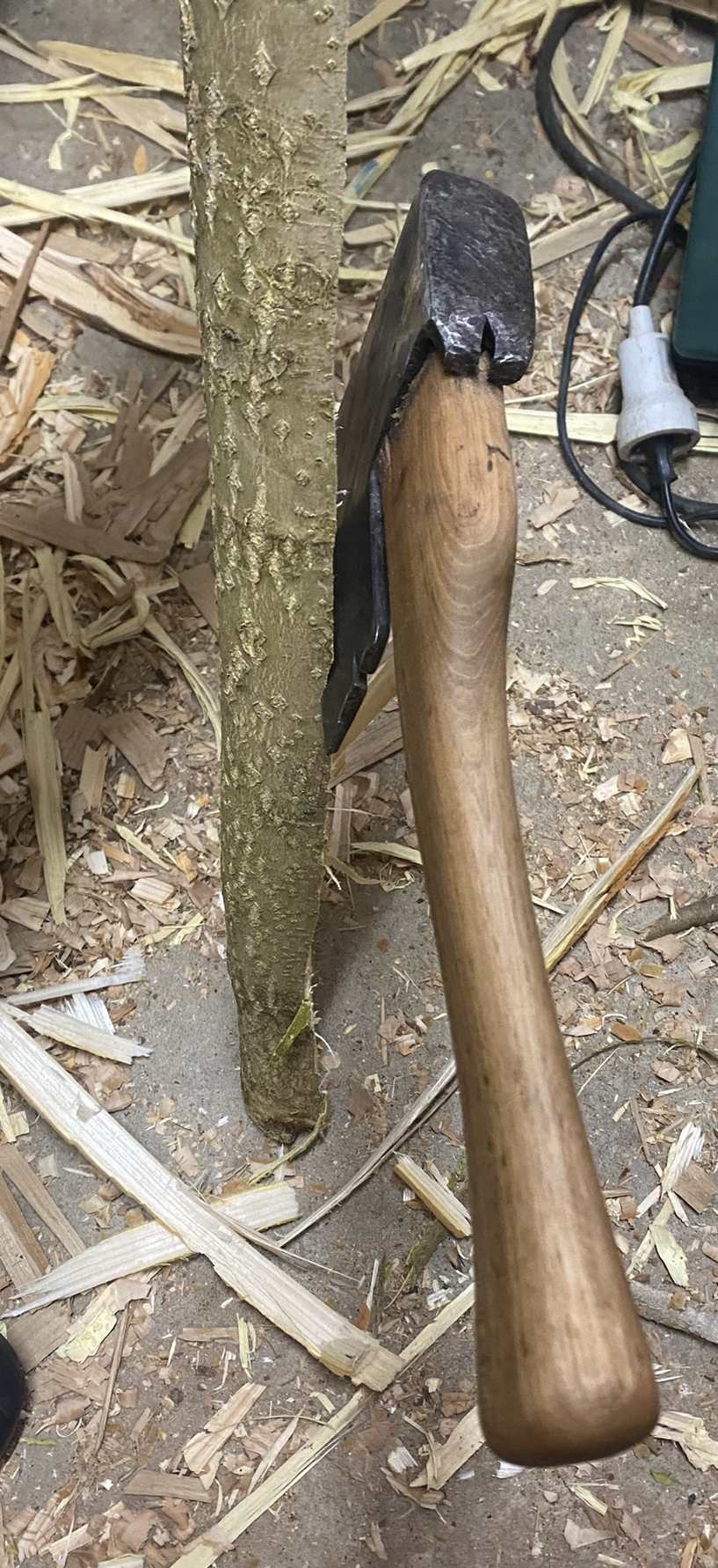 Ich habe von unten nach oben zu spalten angefangen. Da verlief der Riss etwas, zum Glück auf die Abfallseite.
