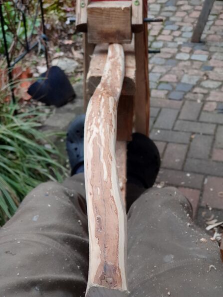 Beim ersten leichten Biegeversuch hat's ganz arg geknurspelt. Also die verdammte Rinde doch runtergemacht.