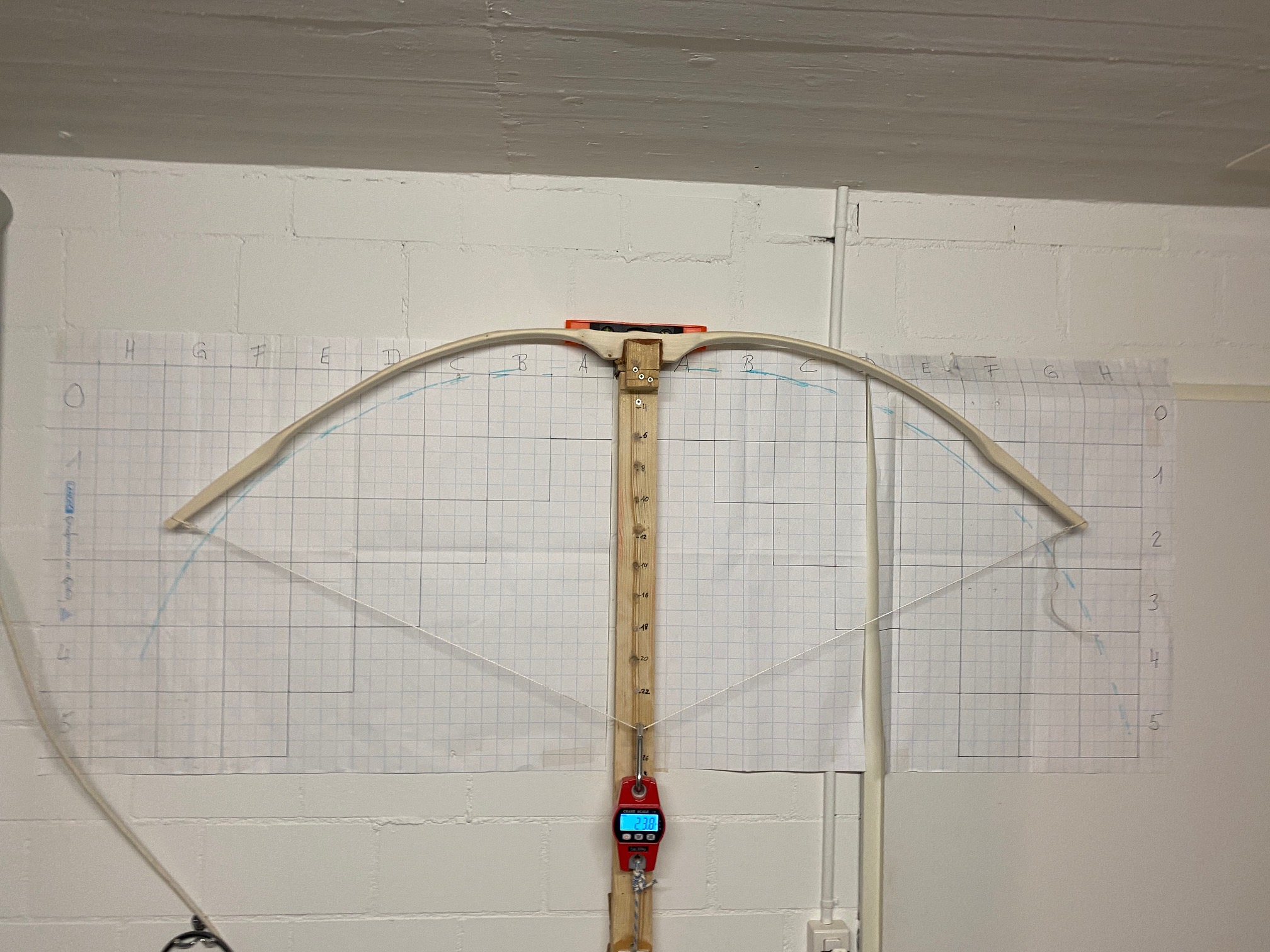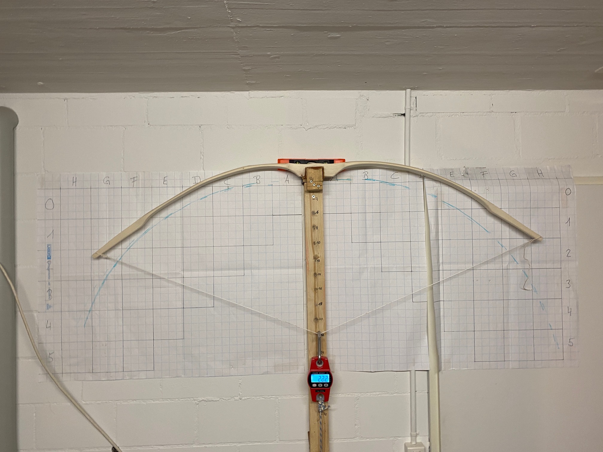 Benzi hat eh schon die richtige Antwort gegeben!, Kreistiller mach ich natürlich nicht immer! Dein Bogen ist 157cm lang, davon 20cm Griff und Fadeouts und 46cm Needletips macht 66cm nicht biegenden Anteil im Bogen, bleiben 91cm zum Biegen. 45,5cm auf beiden Seiten ist ziemlich wenig und braucht daher eine möglichst gleichmäßige Zug- und vor allem Druckverteilung. Aus meiner Sicht ist daher für den biegenden Teil ein Kreistiller am Besten, weil sehr gleichmäßige Verteilung der Kräfte. Links biegt der Bogen griffnahe am meisten, da wird er Dir wahrscheinlich schnell am Bauch knittern. Ich bringe die Wurfarme immer auf einen exakten Breiten- und Dickentaper, bevor ich ihn zu biegen beginne. In diesem Fall würde ich einen Breitentaper von 4cm auf 3cm wählen (im Bereich der biegenden 45,5cm), am Beginn der Wurfarme bds. exakt gleich dick feilen und dann nach außen hin alle 5cm 0,5mm dünner werden und zwar exakt und gleichmäßig verlaufend. Dann würde ich den Bogen auf Standhöhe aufspannen. Erfahrungsgemäß wird sich der Bogen jetzt bereits gleichmäßig biegen. Dann Ziehen am Tillerbaum und schauen ob er sich beim Ausziehen weiter so gleichmäßig verhält. 40 mal Ziehen bis 15 Zoll, mit der Ziehklinge angezeichnete Stellen nachkorrigieren, 40mal Ziehen, wenn gleichmäßig, Ziehen bis 20 Zoll, nachkorrigieren mit der Ziehklinge und 40mal Ziehen. Wenn gleichmäßig, dann Ziehen bis 25 Zoll usw., der Bogen ist in 2 Stunden fast fertig getillert. Dann weglegen und am nächsten Tag frisch ausgeruht wieder alles nachkontrollieren. Da ein bißchen wegschaben und dort ein bißchen und dann 1 Zoll mehr und 2 Tage warten …..bringt gar nichts. LG Stephan