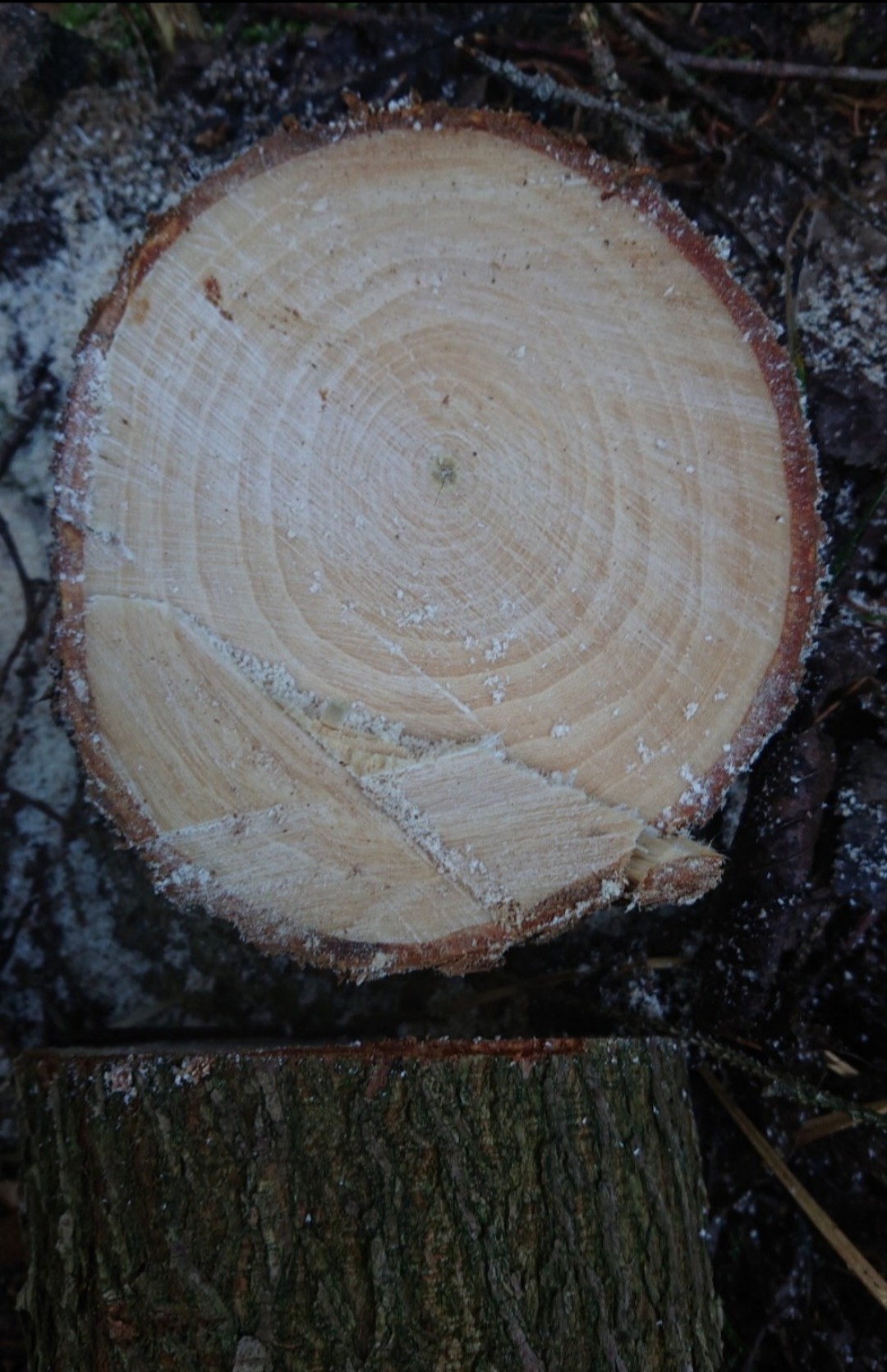Also hab ich ausgeholfen und zum Dank den Stamm erhalten, ca. 25 cm Durchmesser.