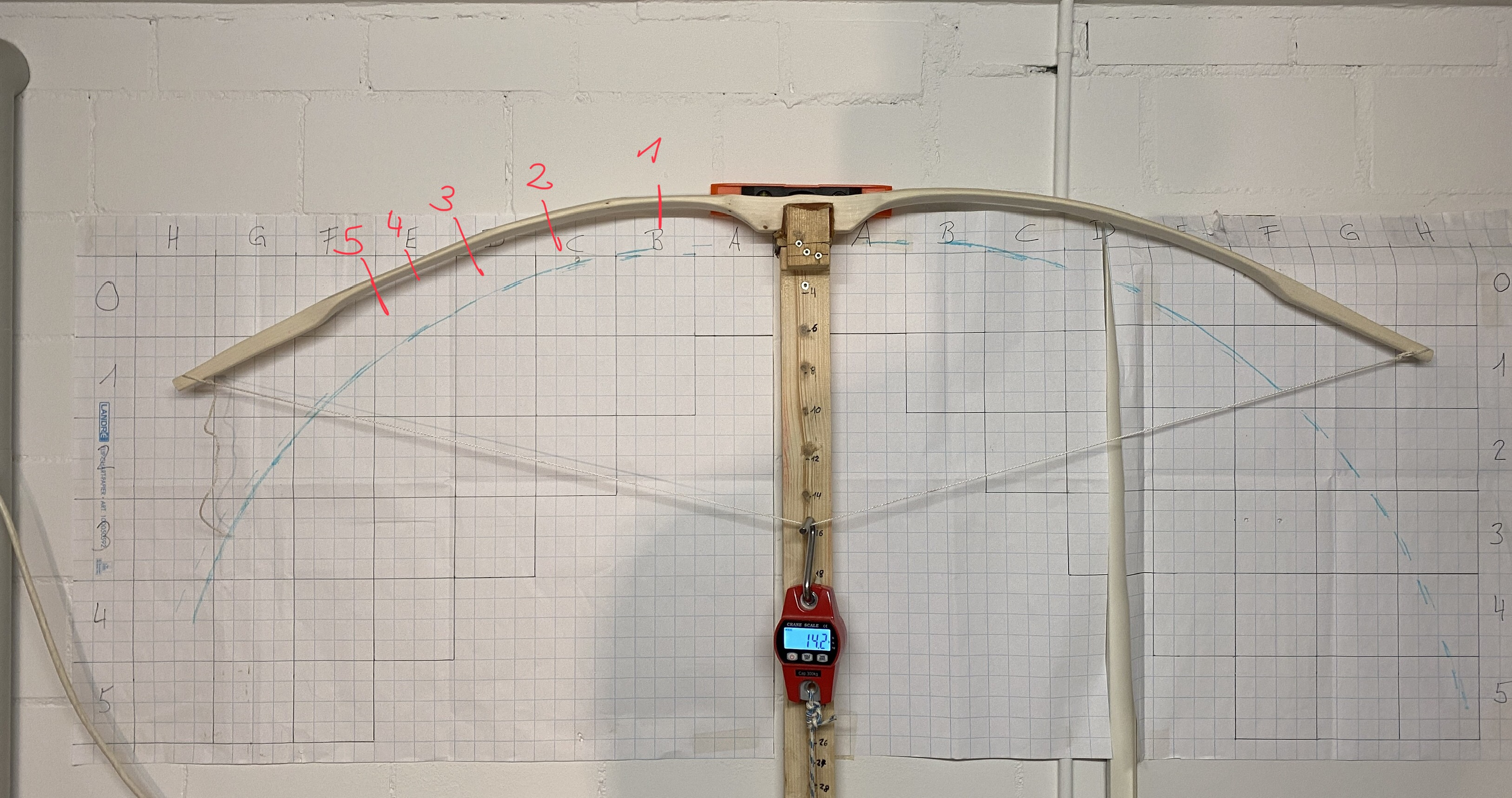 Rechter Wurfarm: Schwachstelle bei B3/4, C biegt im Verhältnis zu D und E zu wenig.
