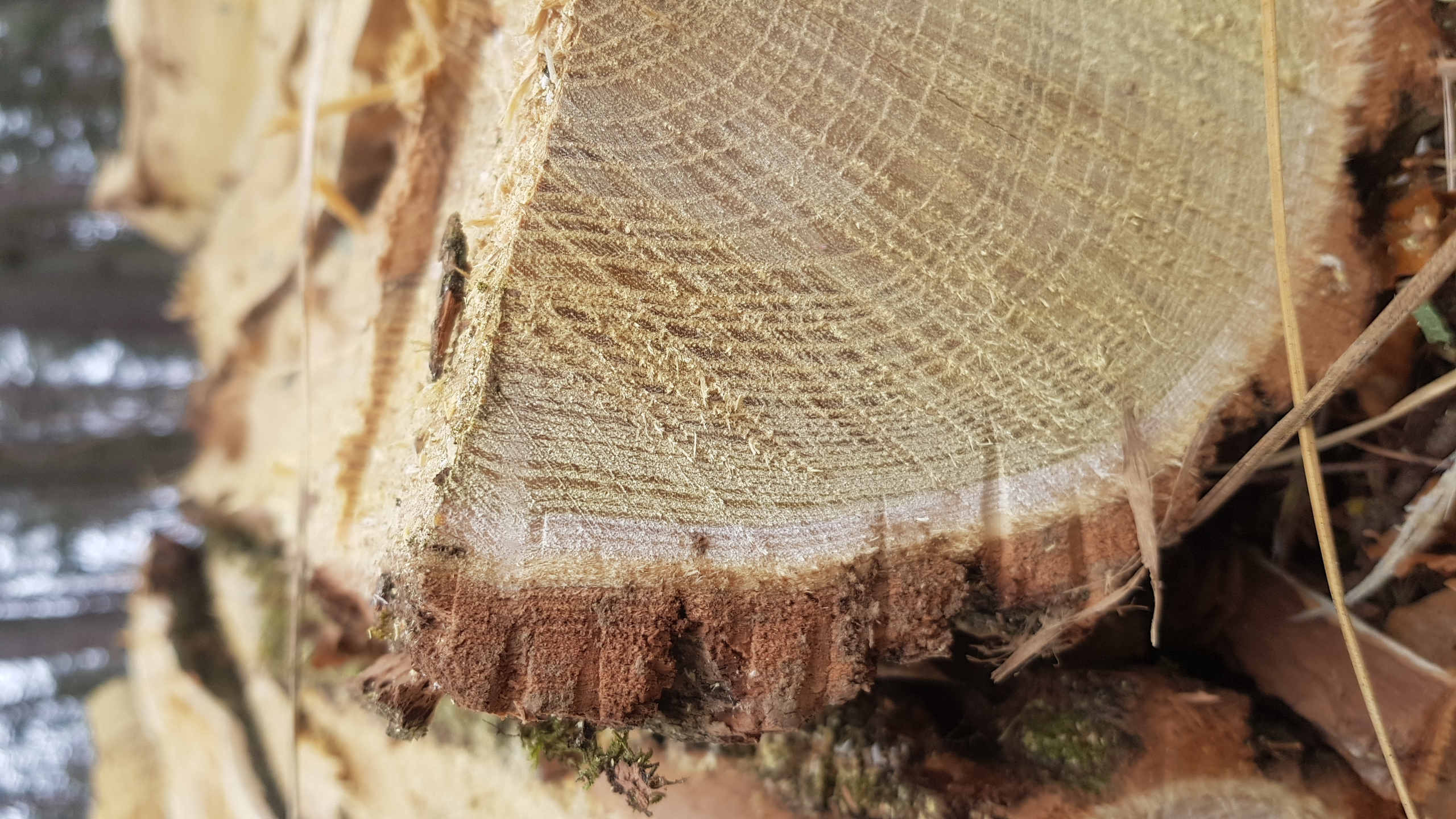 Würde die ganz äußeren Ringe abtragen (6-8 Ringe, schwer erkennbar) und auf einen Hinarbeiten wo man zumindest schön das Spätholz erkennt. Dann bist auf der sicheren Seite.