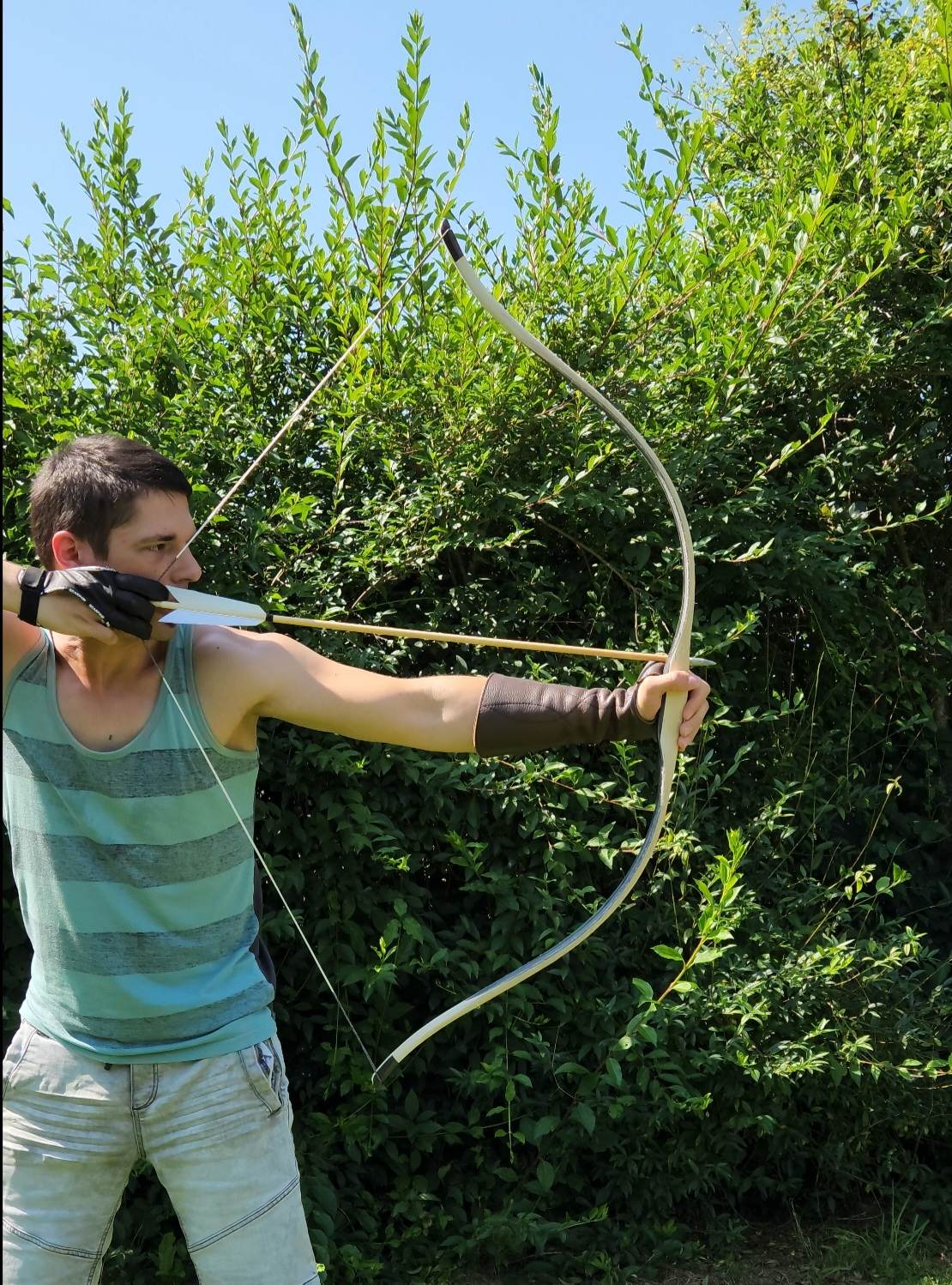Toller Bogen! Super Werte! Schöner Tiller. Bei dem Pfeilgewicht gibt es keinen Handschock. Außerdem habe ich bei Kompositbögen -selbst bei überdimensionierten Siyahs- nie lästigen Handschock festgestellt. Siyahs kann man übrigens auch mit „Bier“ aus dem Türkischen ins Deutsch übersetzen, nur so, weil ich gerade dabei bin 😉🍻. Den Bogen jetzt so zu lassen ist eine schlechte Idee, der Sehnenbelag braucht einen Schutz, also, wie geplant Rohhaut drauf und wie geplant Bemalung drauf, ist ja ein Westküsten-Indianerbogen und Der braucht das! LG Stephan