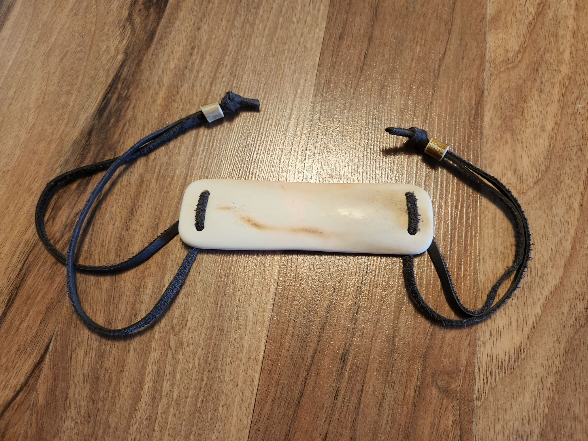 Nebenbei zeig ich hier auch kurz den Knochenarmschutz (aus dem selben Buch) den ich quick and dirty in etwa 45 min nachgebaut hab. Ich hatte bereits eine von den Abmaßen und der Form passende Knochenplatte zufällig daheim. Da dieser Armschutz sehr selbsterklärend ist belasse ich es bei den Fotos des fertigen Armschutzes.