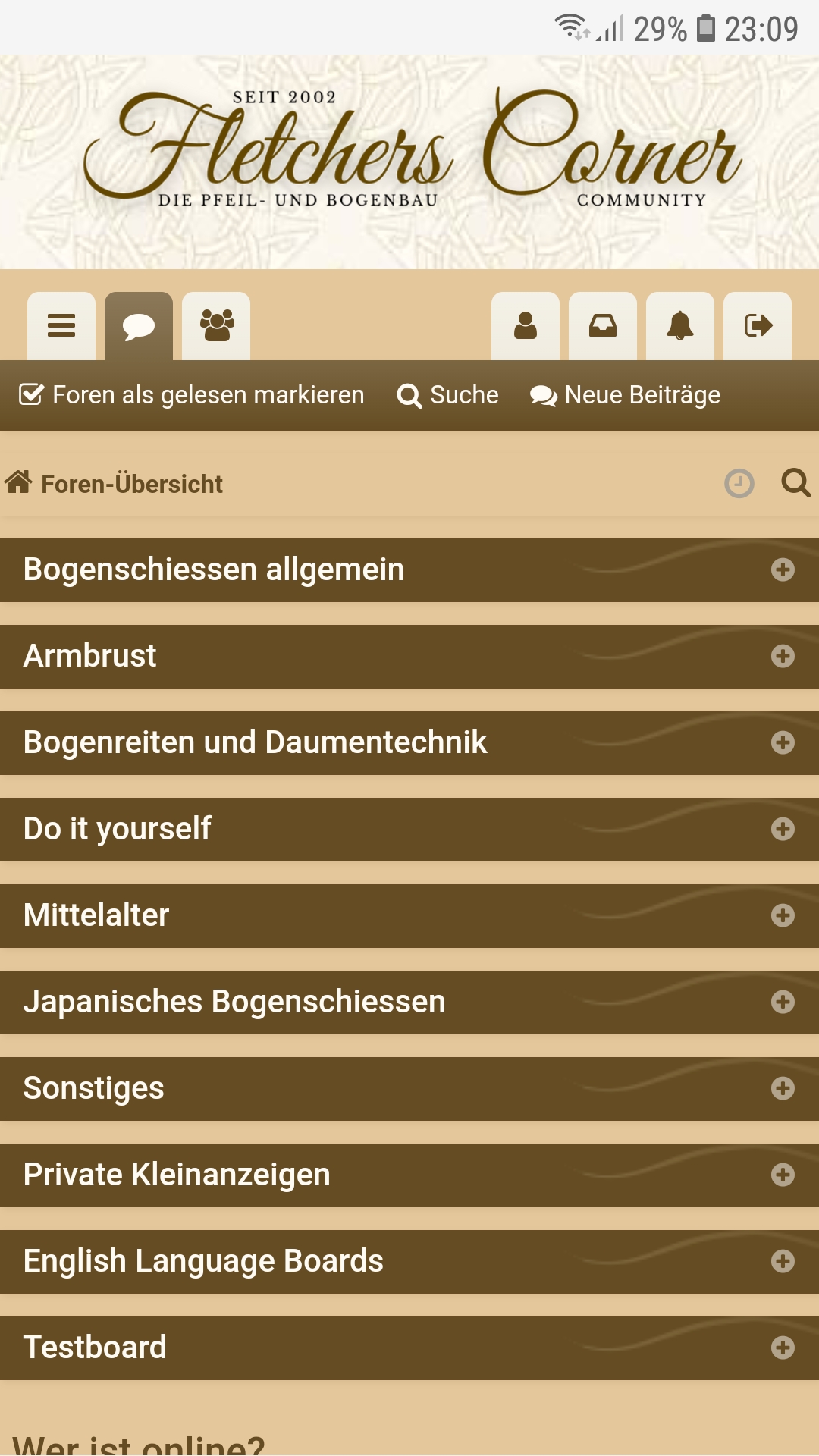 Bei Click auf's Logo kommt das (die einzelnen Foren hab ich zugemacht) Einen Button "Startseite" gibt es nicht, nur wenn ich abgemeldet bin.