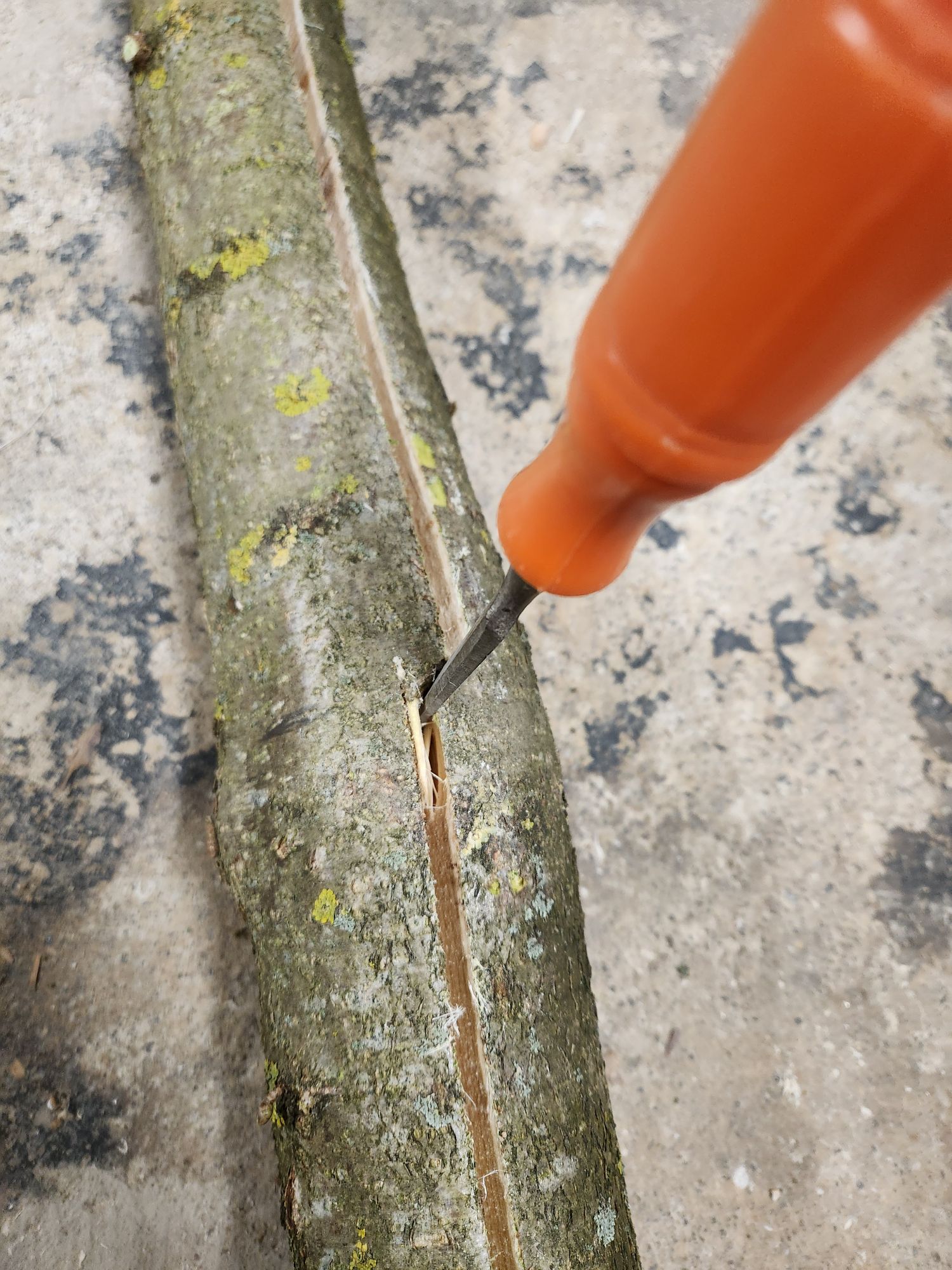 Also muss ich auskommen mit dem was ich noch hab. Ich werde versuchen bei der anderen Hälfte des Stamms den Knick im Griff zu entfernen und werde ihn auf 4cm breite lassen.