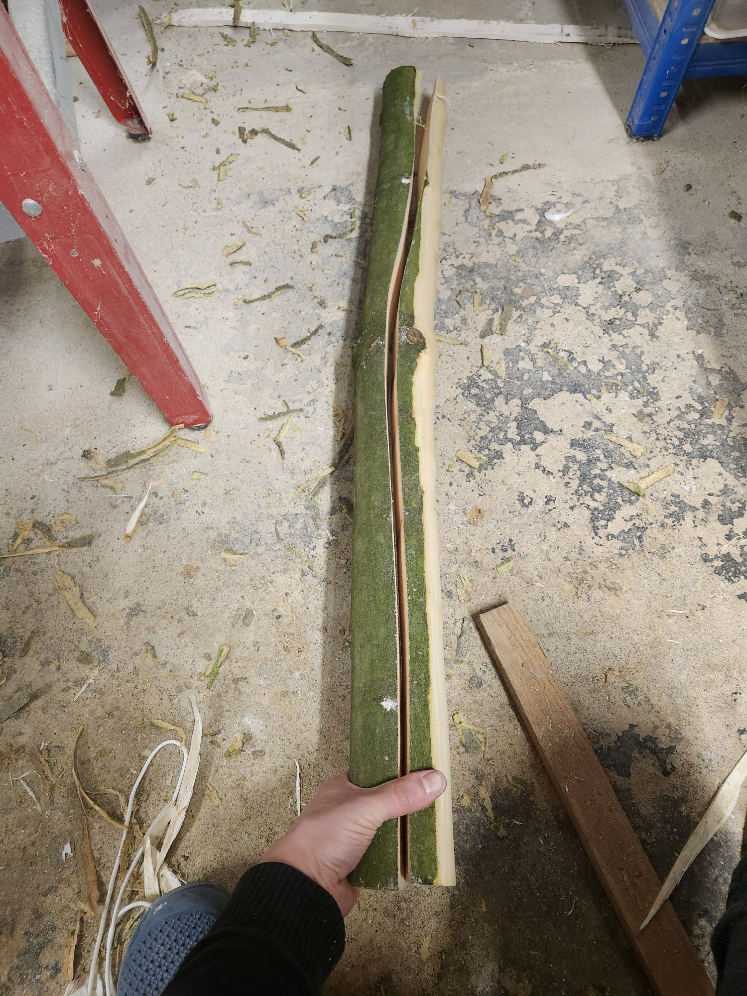 Nachdem ich mich näher über Penobscot-Bögen informiert hab (oder es zumindest versucht hab), bin ich zum Entschluss gekommen dass die verschiedenen Designs nicht wirklich viel Unterschied machen. Oder ich finde auch einfach nichts darüber, wie die Bogenphysik dahinter wirklich funktioniert. Aber beim Vorderen Bogen dürfte es sich im wesentlichen nur um eine Art Backing handeln weshalb ich das Projekt simpel halten werde indem ich nur einen einfachen Selfbow mit einem geraden (leicht reflexen) Vorbogen versehe.