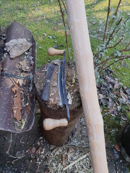 Heute mit der Bandsaege aufgesaegt und abgerindet mit Ziehmesserruecken und Spachtel: