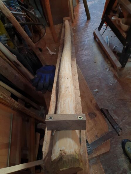 Jetzt sind sie erstmal in der Werkstatt und duerfen ein bissl vortrocknen. Der Holler ist mir deutlich zu reflex, deswegen hab ich den auf einen Balken geschraubt.