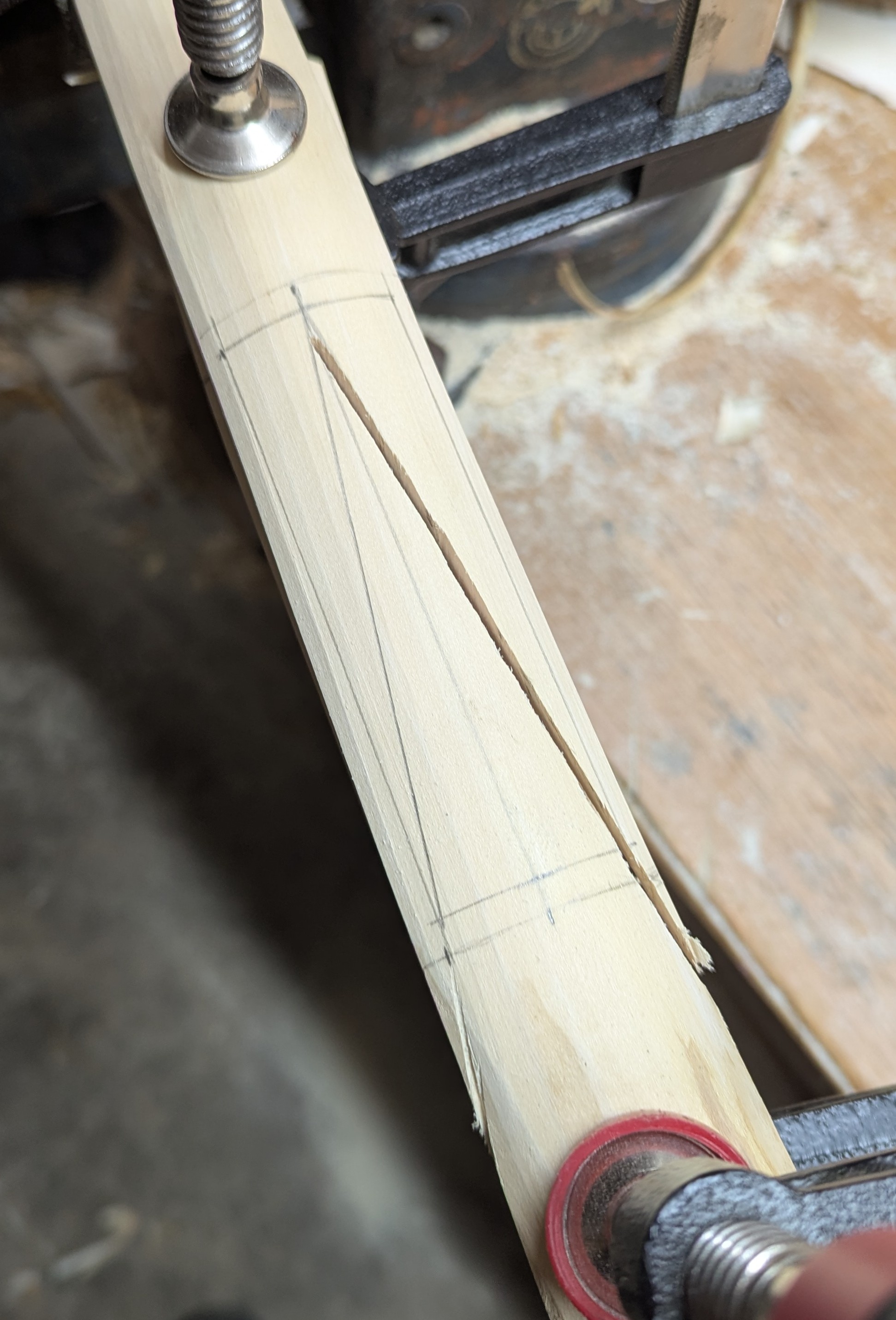 Den Ahorn hab ich in der Dicke mittig auf 1cm und an den Enden auf 5mm reduziert.