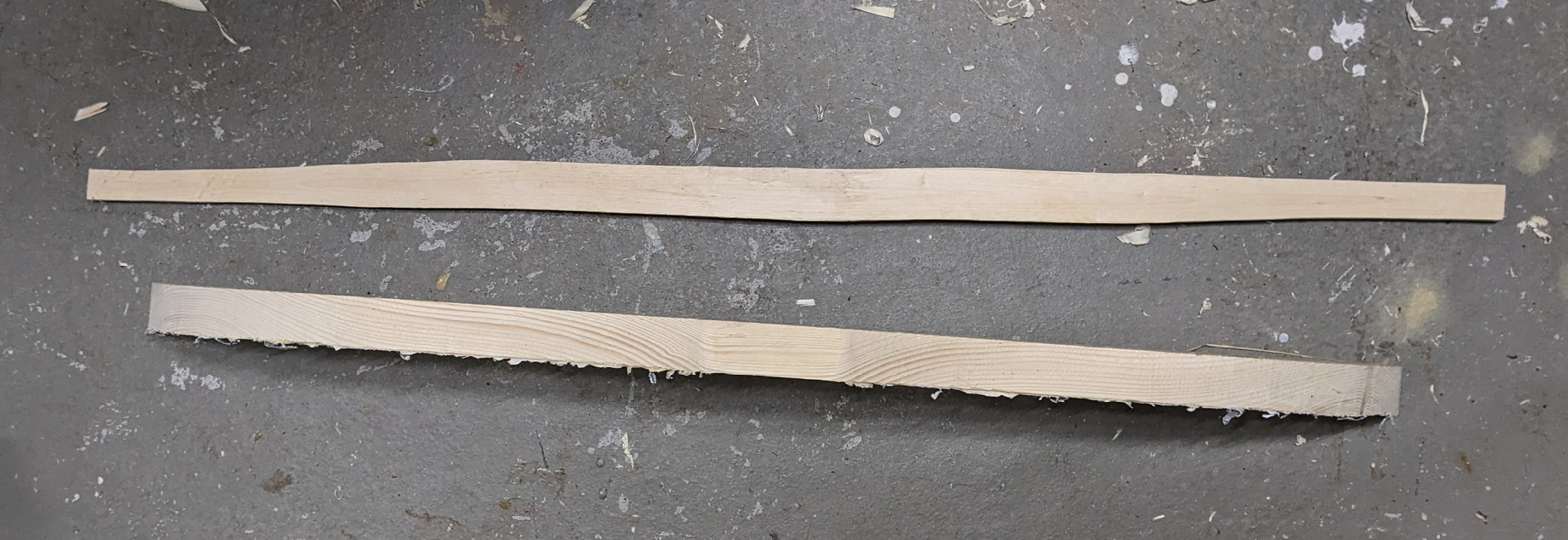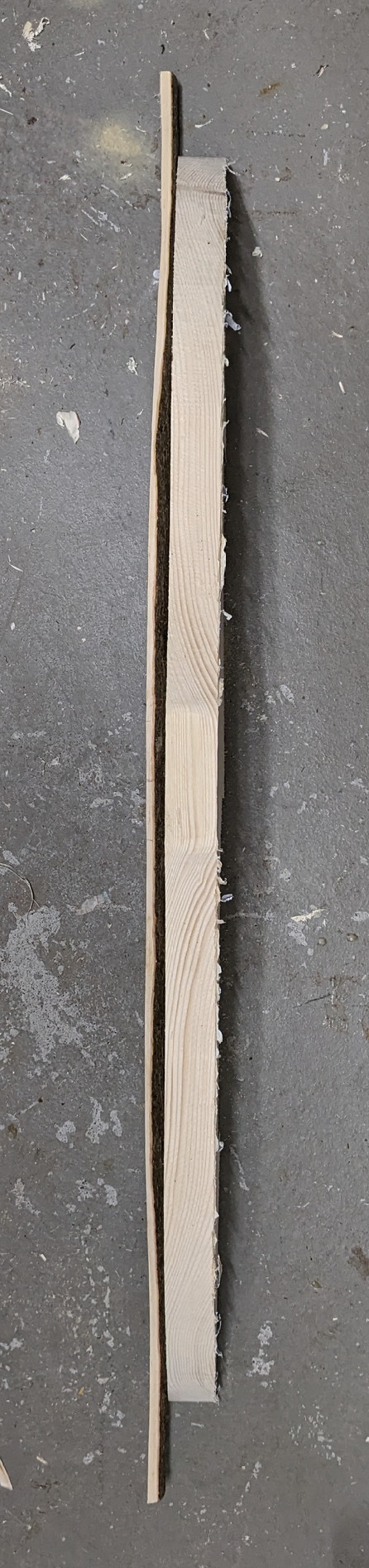 Dann Hasel Nummer 2 auf 125cm abgesägt und den Bauch abgespalten. Zum Schluss habe ich das Profil grob ausgearbeitet.