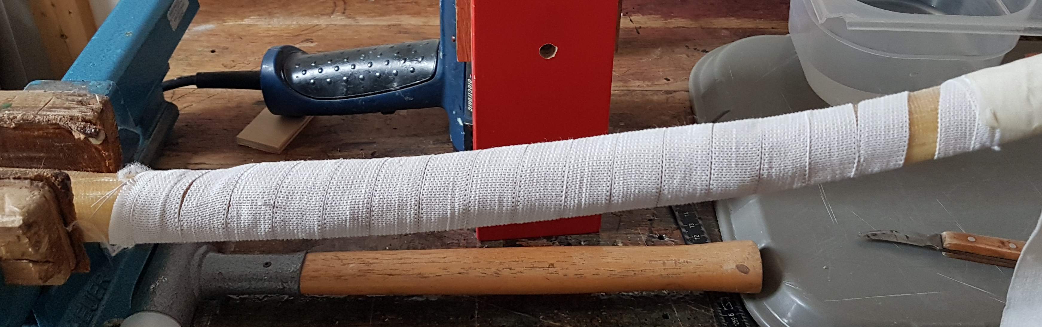 Bogen 01 kurz: heute wurde eine zweite Sehnenlage aufgeklebt.