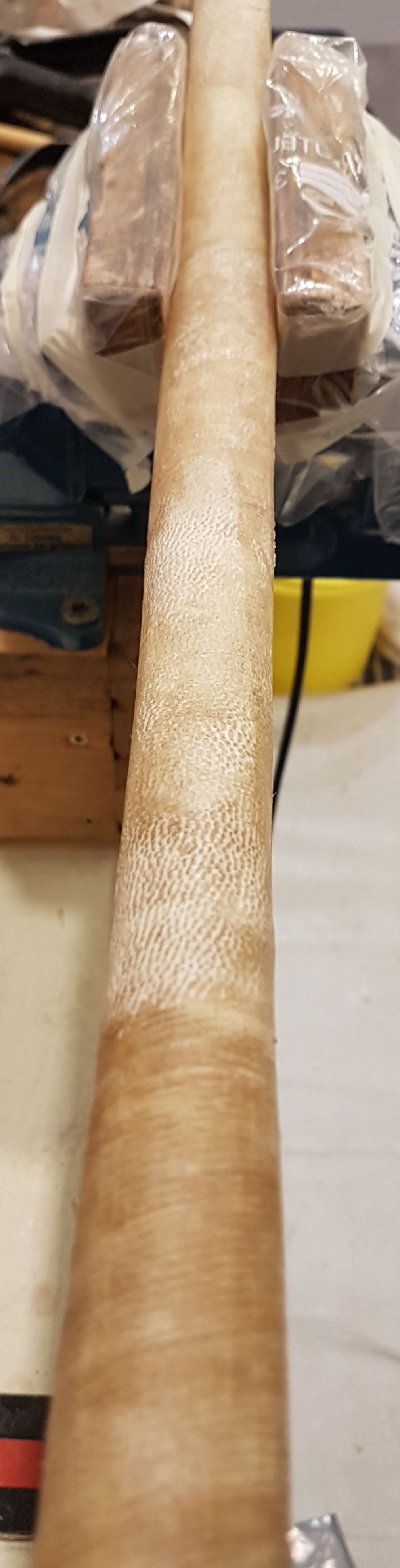 Boegn 02 lang: Heute wurde der Griffbereich weiter bearbeitet und die Seiten der beiden WA abgerichtet. Außerdem habe ich angefangen am Bauch Holz abzutragen und zu schauen ob und wie das Holz biegt. Sieht alles noch gut aus.