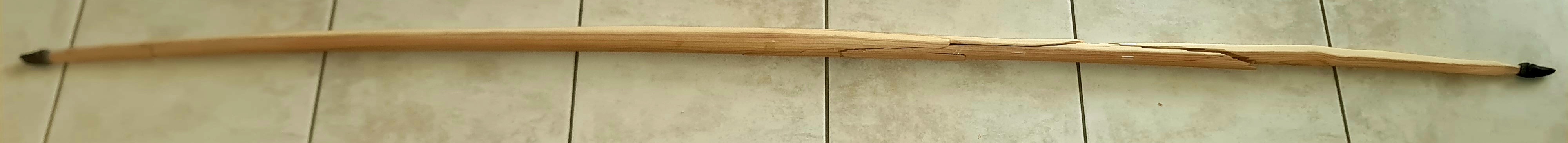 Der Bogen notdürftig zusammengeflickt und die Einzelteile: