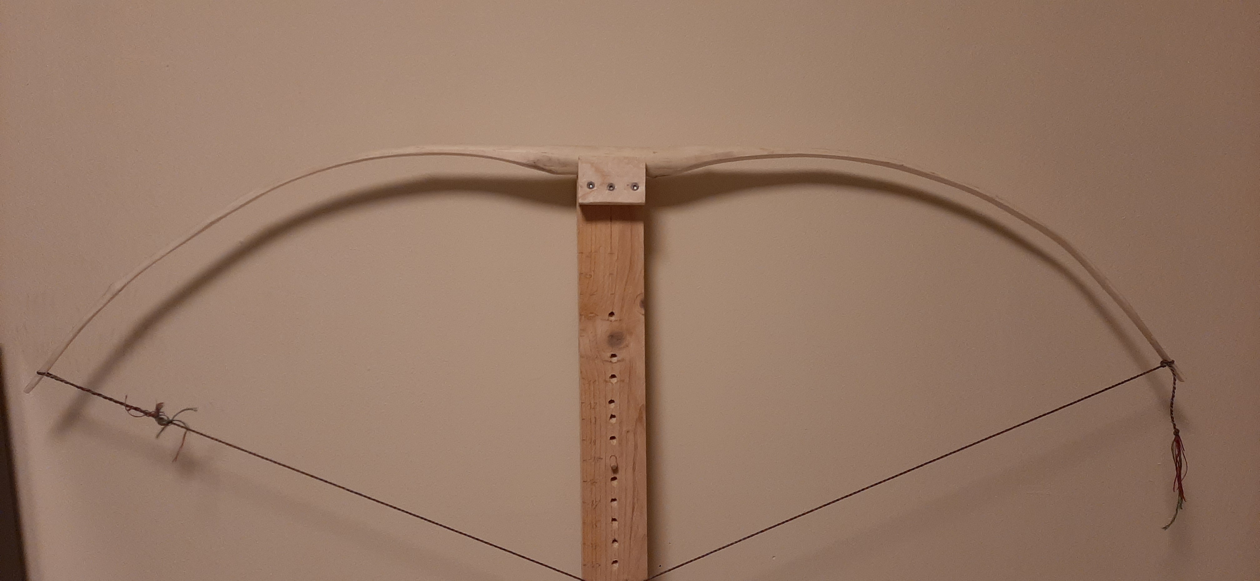 So, anbei ein paar Bilder vom ersten Stock mit Sehne, immerhin bisher nicht gebrochen. Süße 11 Pfund hat er :D . Mal sehen ob ich da jetzt noch recurves zur Übung reindampfe ::)