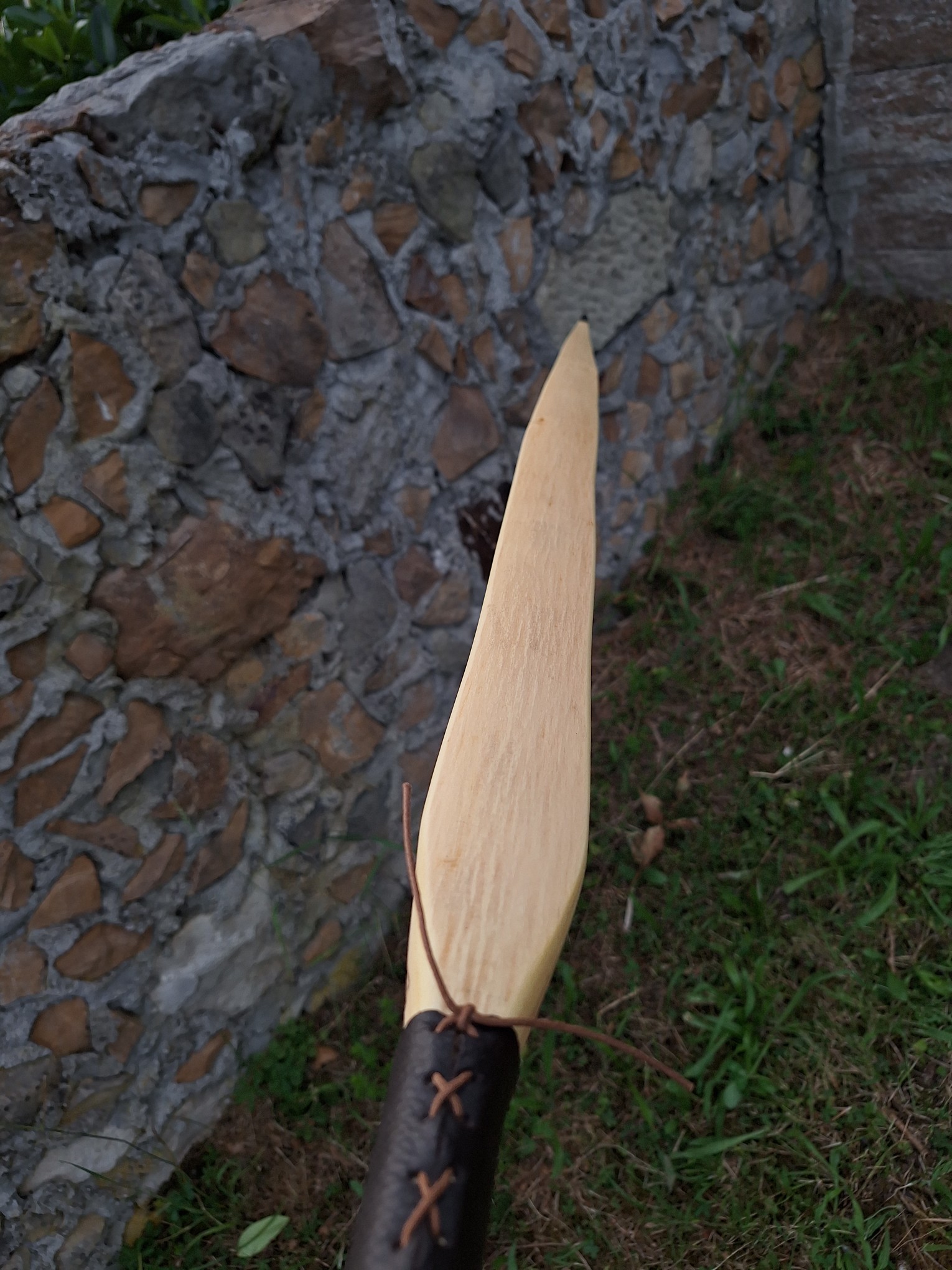 Du könntest die Ränder des Leders ausschärfen (auf fast 0 dünner machen) und umkleben. Dann hast du keine Schnittkanten mit dem fransigen fusseligen Leder der Fleischseite. Ein paar Löcher mehr für den Riemen sehn mMn auch besser aus. Oder verschiedene Flechtweisen, müssen ja nicht immer Kreuze sein