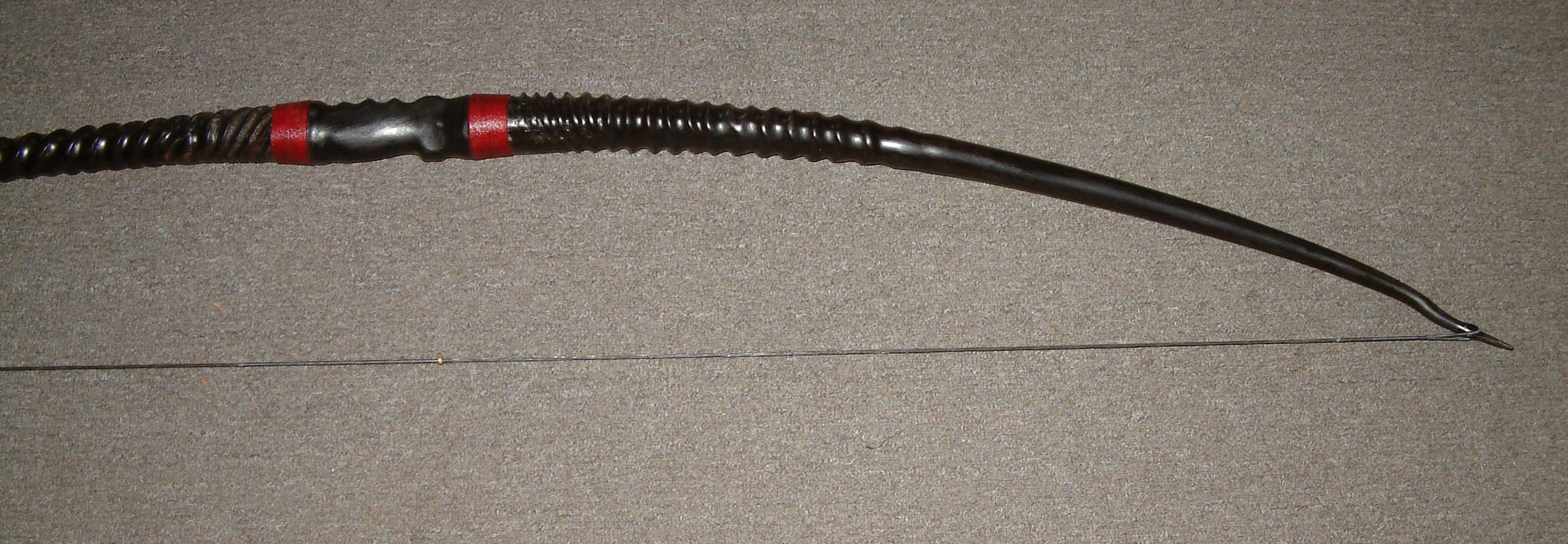 Jürgen hatte seinen Glasfaserbogen mit durchsichtigen Elementen im Griffbereich versehen. Ein schöner Anblick, wenn das Licht hindurch kam.